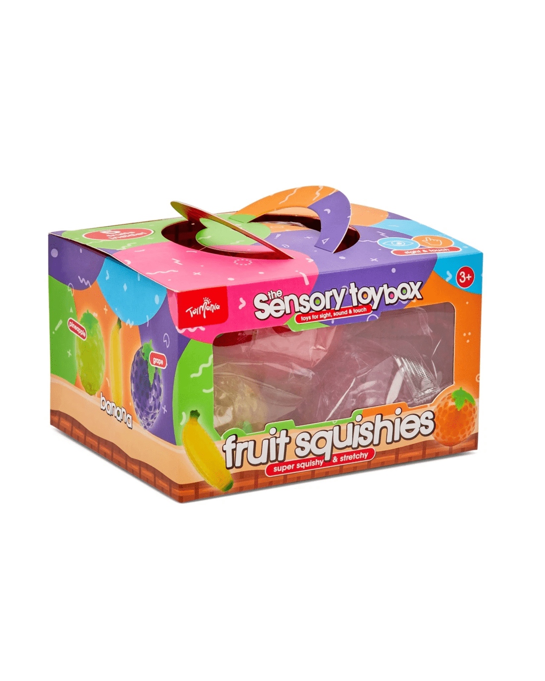 Sold by Kmart5 Pack ToyMania The Sensory Toy Box Fruit Squishies