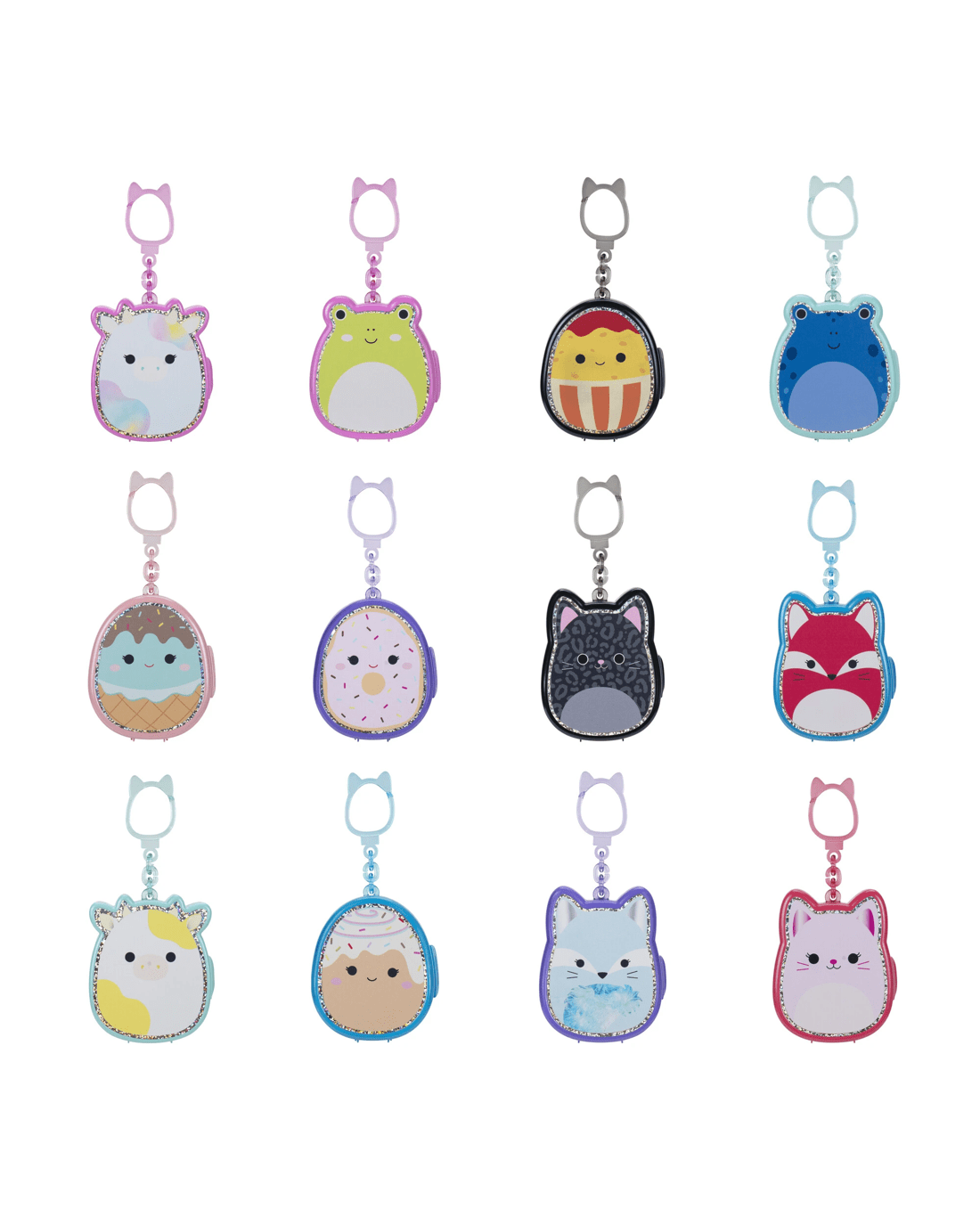 Get ready for a new level of squish with Squish-a-longs, the latest addition to the Squishmallows family! An adorable and portable collectible, Squish-a-longs Mini-Squish, made of squeezable plastic, is perfect with its 1-inch size! With the Clip-a-longs, you can take your Mini-Squish anywhere! Each case looks like a different Squishmallows character and includes three unique Mini-Squish. The case can hold up to eight total Mini-Squish (additional Mini-Squish sold separately). The attached clip makes it easy to attach to your lunchbox, backpack, bag, or more! The ring allows you to turn your Mini-Squish into a fashion statement. With 36 total Mini-Squish, the collector's guide will help you keep track of your growing collection. Take squish fun on the go with the Mini-Squish Clip-a-longs!