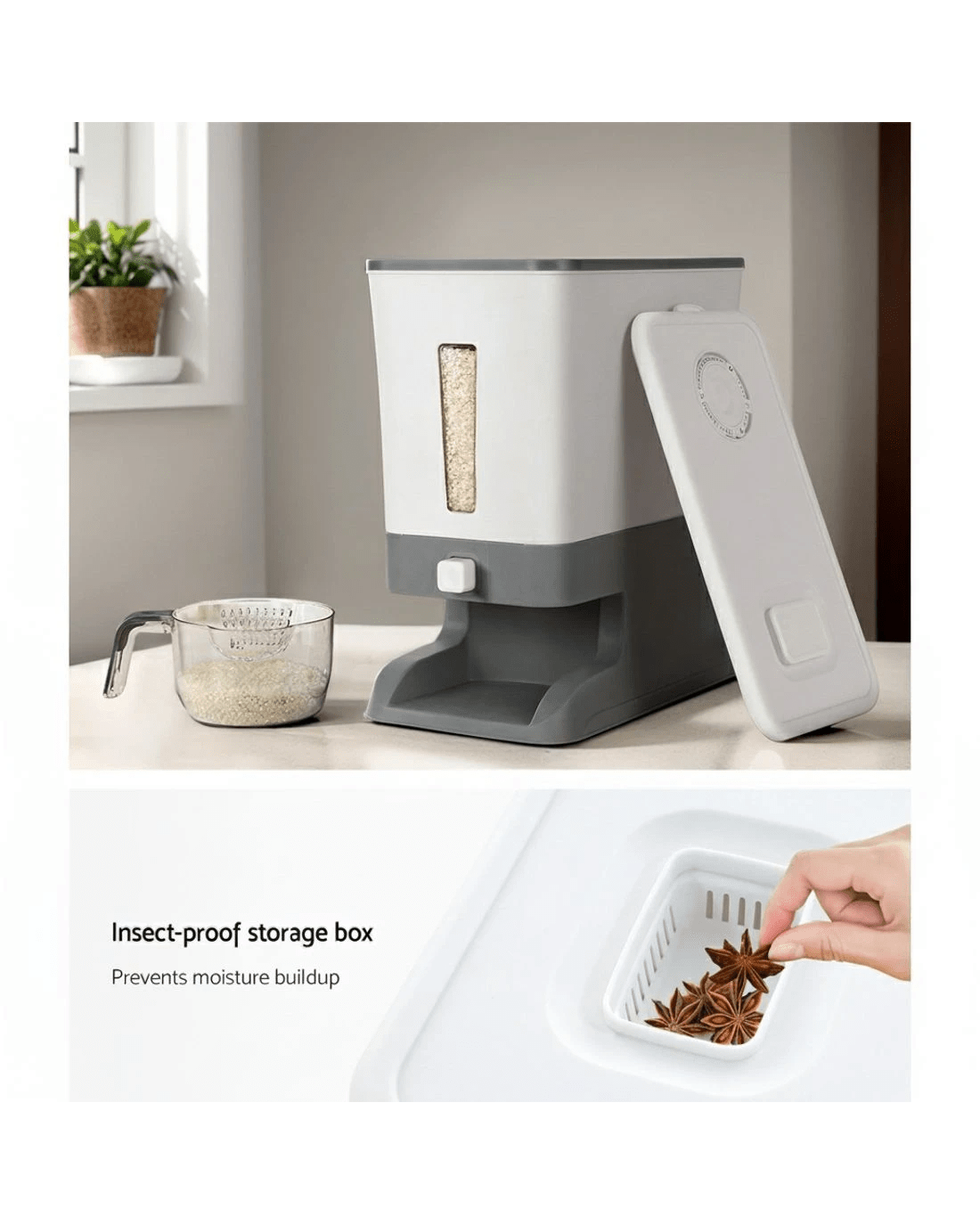 Sold by Aisle Six5-Star Chef Cereal Dispenser Rice Container 12KG - Grey