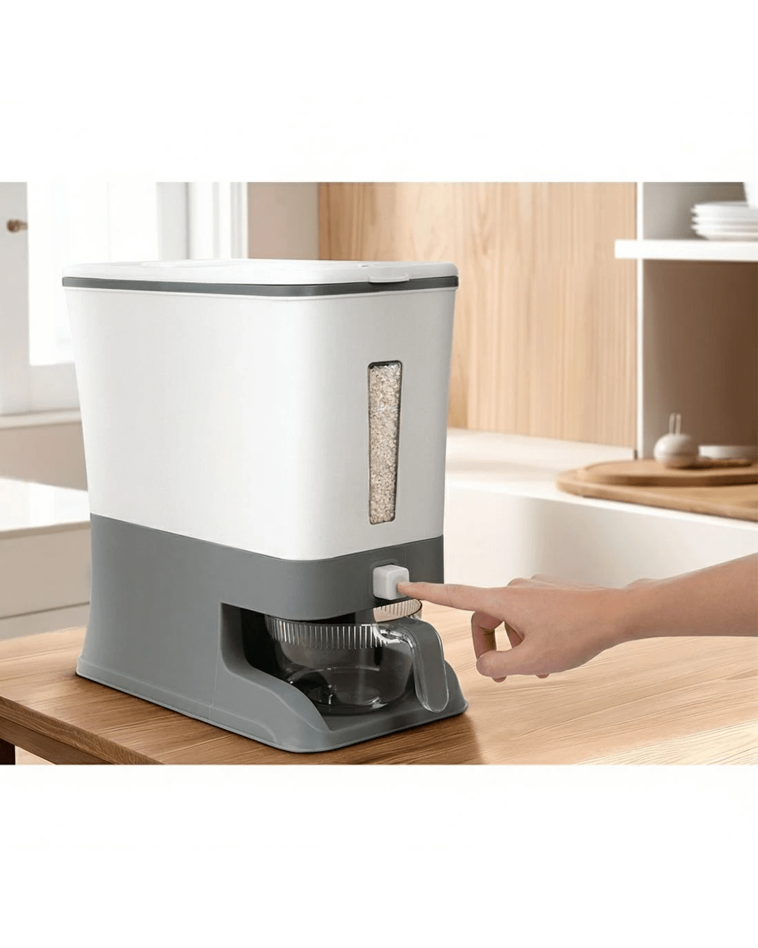 Do you need to store rice, cereal, nuts or other staples in a convenient, easy-to-use container? The 5-star Chef Cereal Dispenser covers all your needs and more. With a generous capacity of 12kg, this dispenser will ensure you never run out of the essentials. Made from food-grade plastic, it guarantees safety and durability for long-term use. Not only does it maintain freshness, but it also keeps your cereals moisture-proof and dust-proof. The one-press output feature allows for easy and convenient dispensing, while the removable top cover makes refilling a breeze. The clear display window with measuring marks lets you keep track of the cereal quantity. The intelligent time record feature helps maintain freshness by recording the date your food was purchased. Its freestanding and space-saving design makes it a perfect fit for any kitchen. Comes with a bonus rice bowl for easy measuring. Keep your cooking essentials close at hand with the 5-star Chef Cereal Dispenser