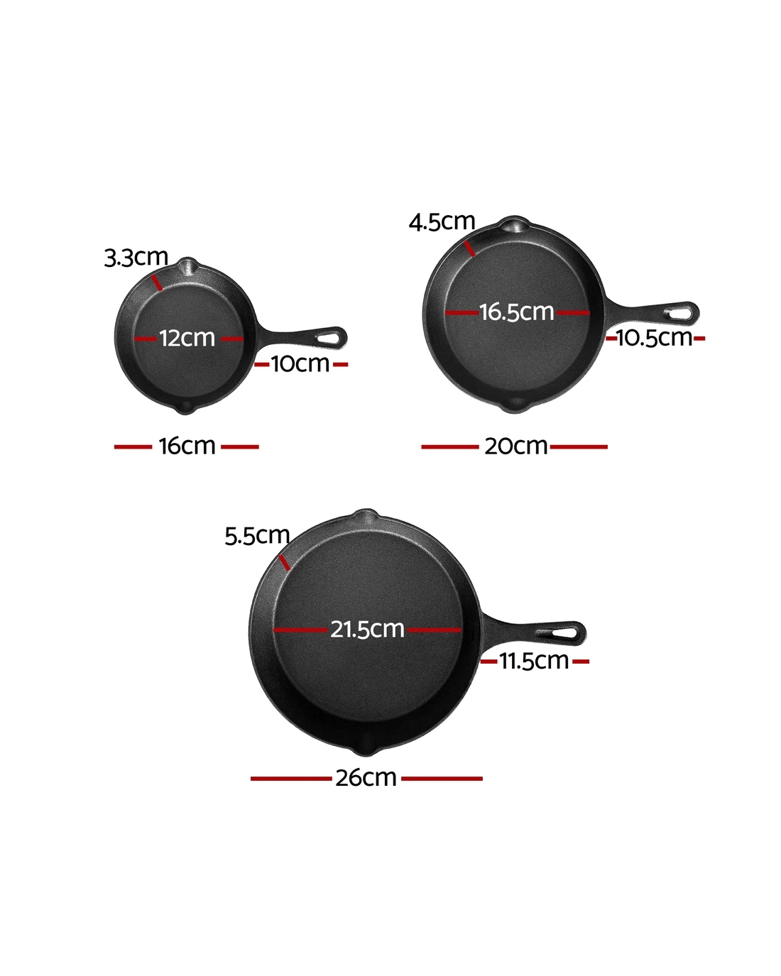 Sold by Aisle Six5-star chef Frying Pan Cast Iron 3PCS - Black