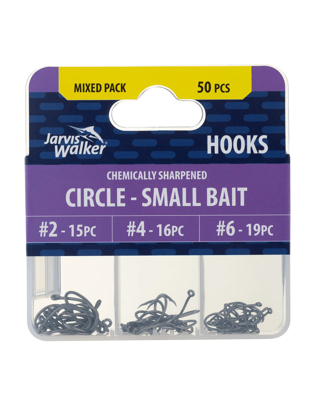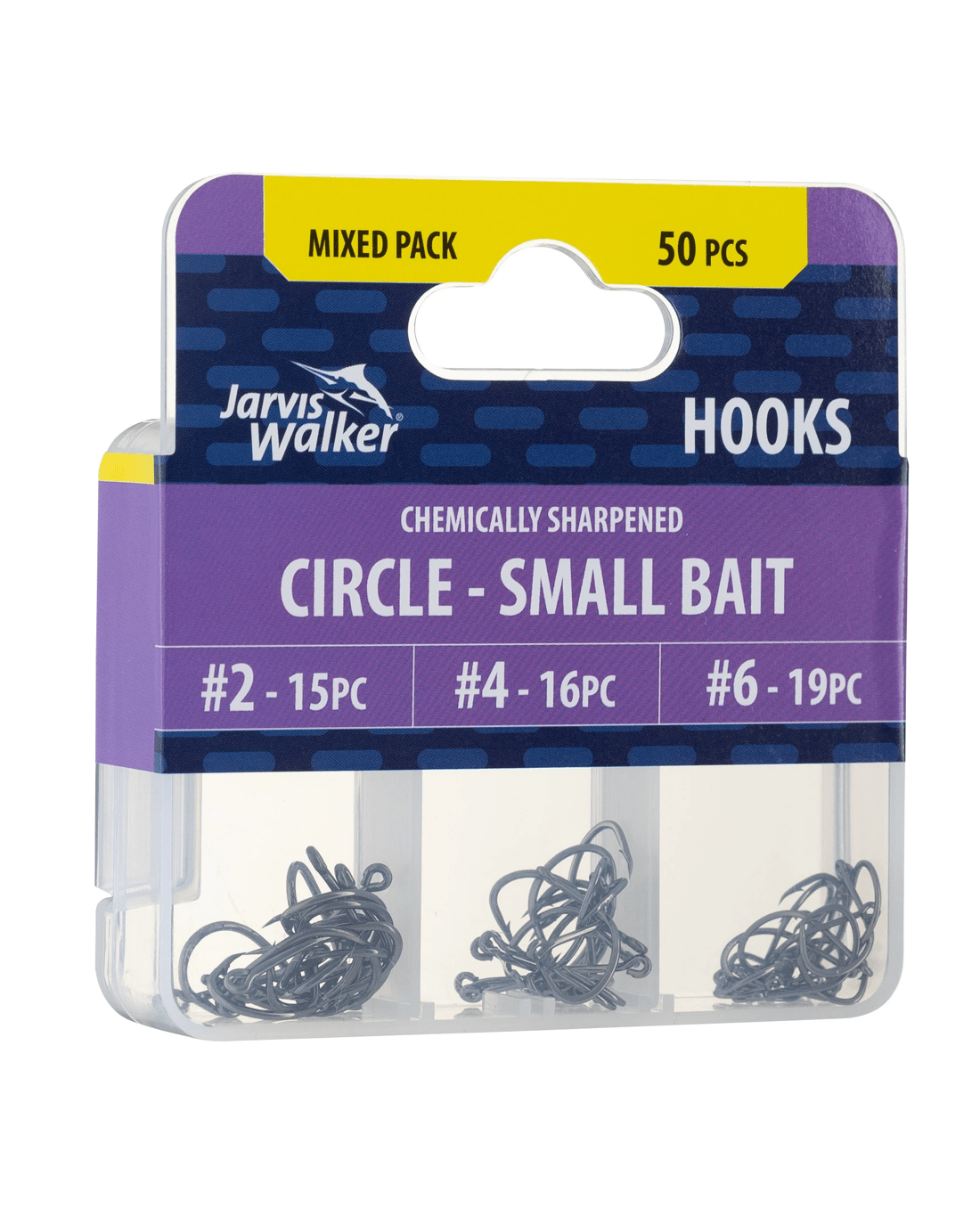 Get set for your next fishing trip with this Jarvis Walker Mixed Circle Hooks pack. It includes Size #2, #4 and #6 hooks, giving you the right sizes for small baits. These strong, reliable hooks are suitable for both saltwater and freshwater.