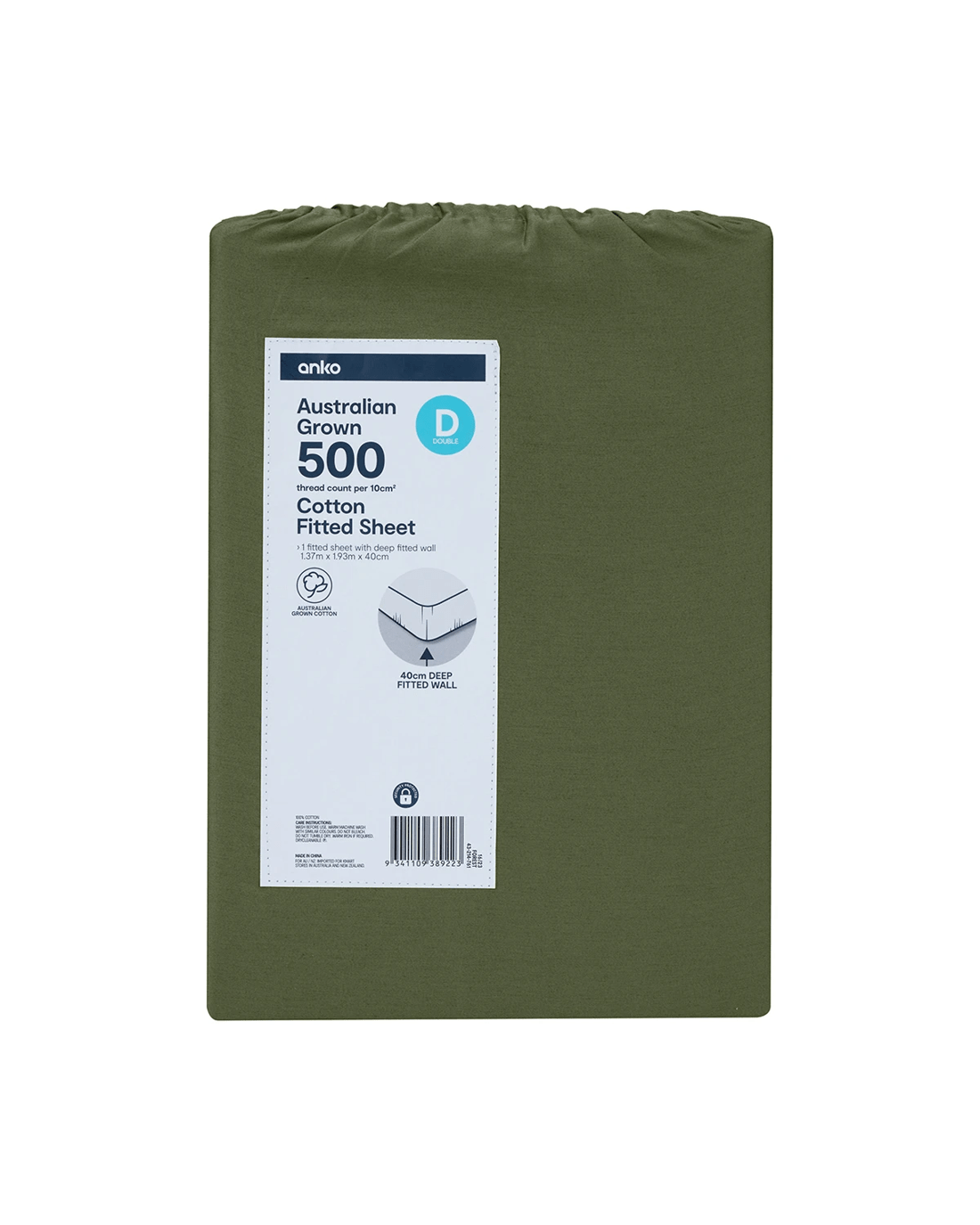 Sold by Kmart500 Thread Count Australian Grown Cotton Fitted Sheet - Double Bed, Forest