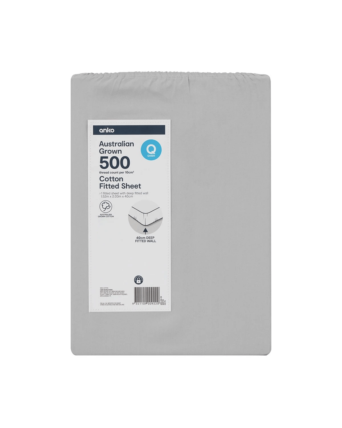 Sold by Kmart500 Thread Count Australian Grown Cotton Fitted Sheet - Queen Bed, Silver