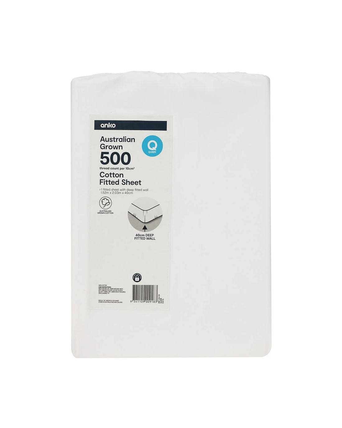 Sold by Kmart500 Thread Count Australian Grown Cotton Fitted Sheet - Queen Bed, White