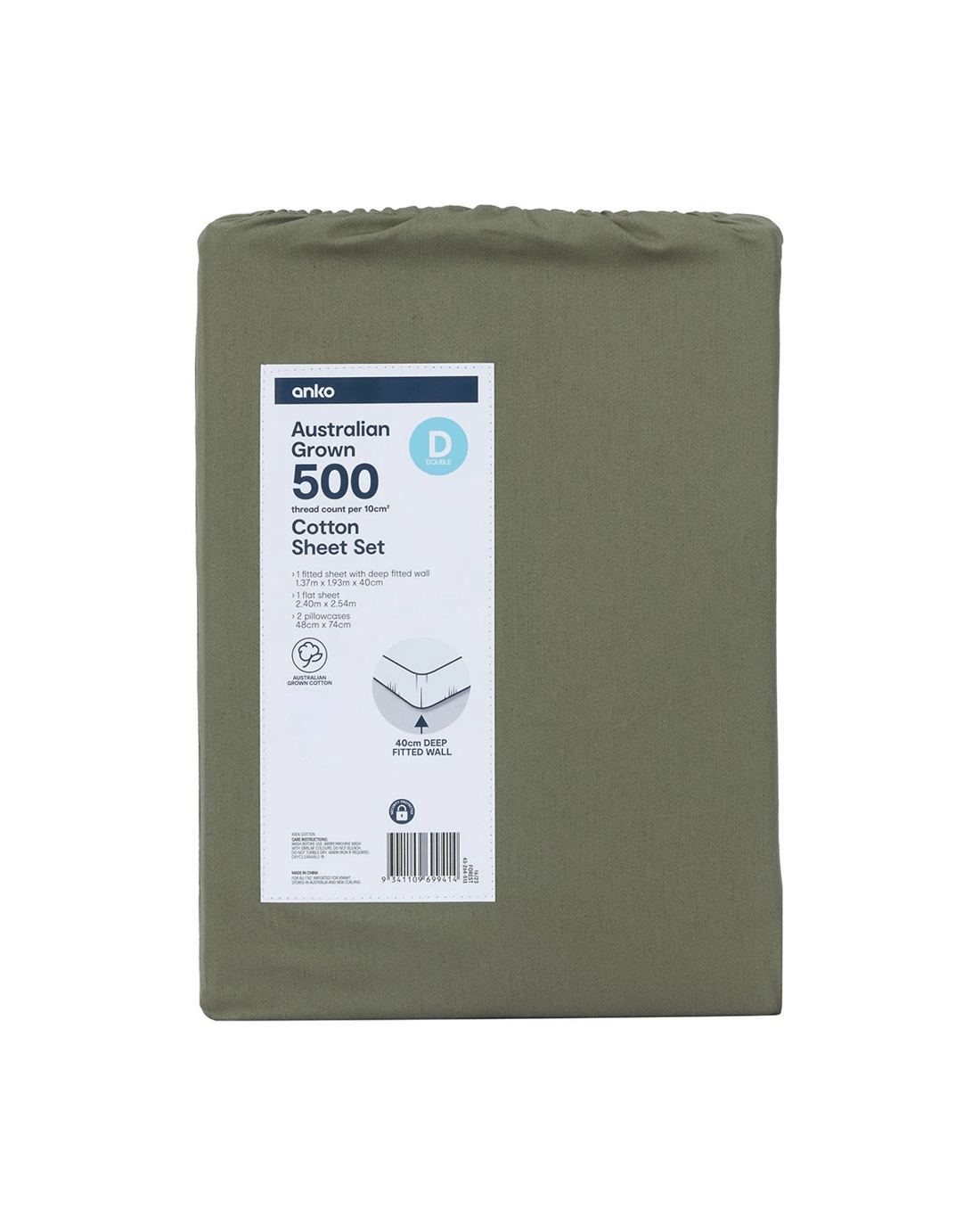 500 Thread Count Australian Grown Cotton Sheet Set - Double Bed, Forest