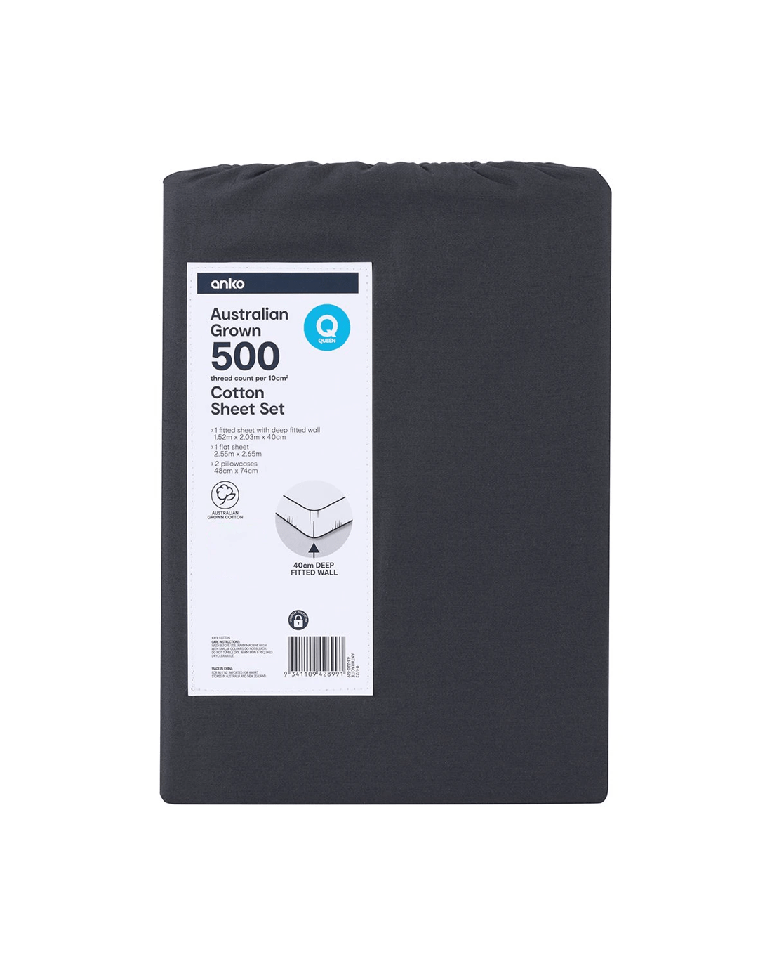Sold by Kmart500 Thread Count Australian Grown Cotton Sheet Set - Queen Bed, Anthracite