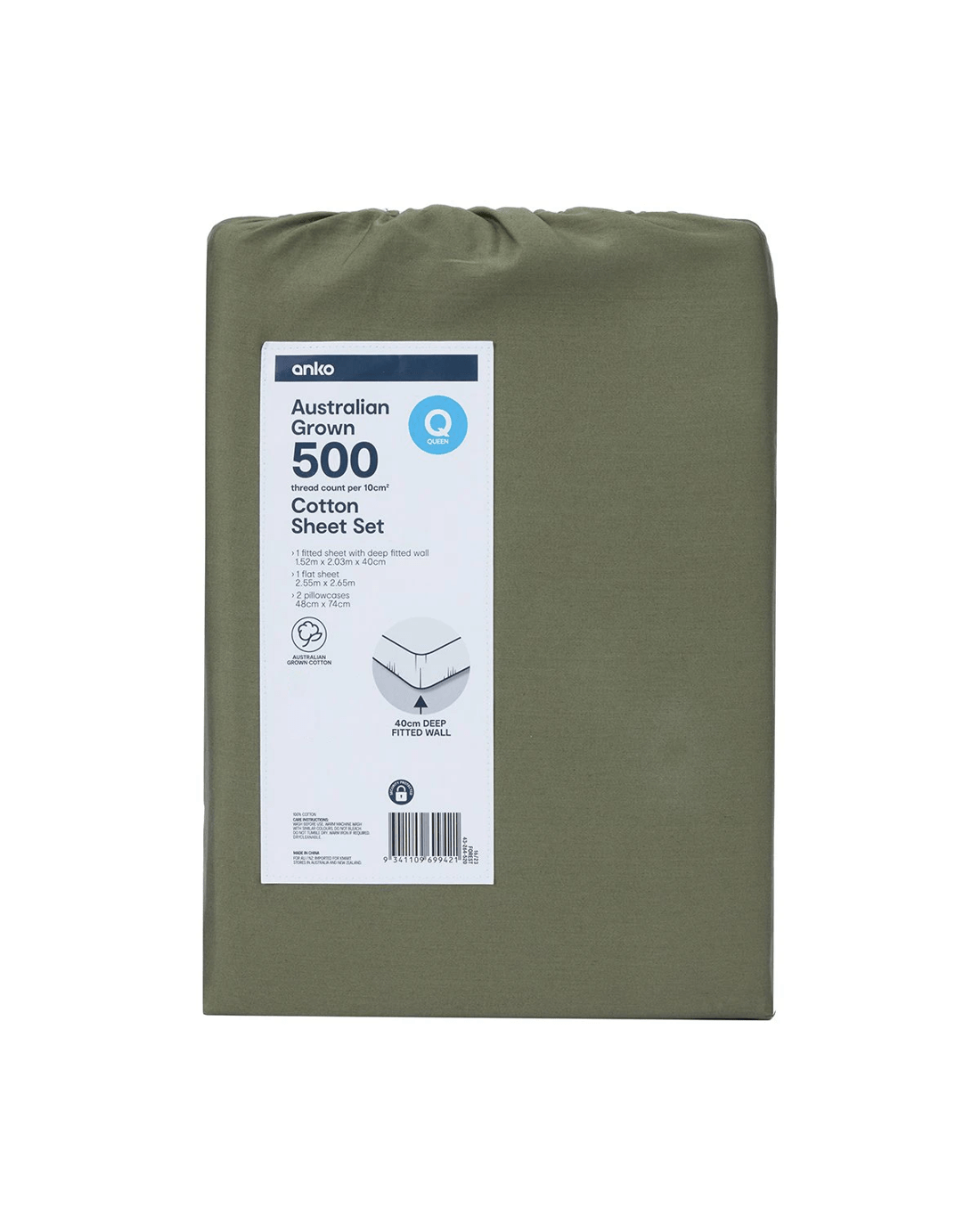 500 Thread Count Australian Grown Cotton Sheet Set - Queen Bed, Forest