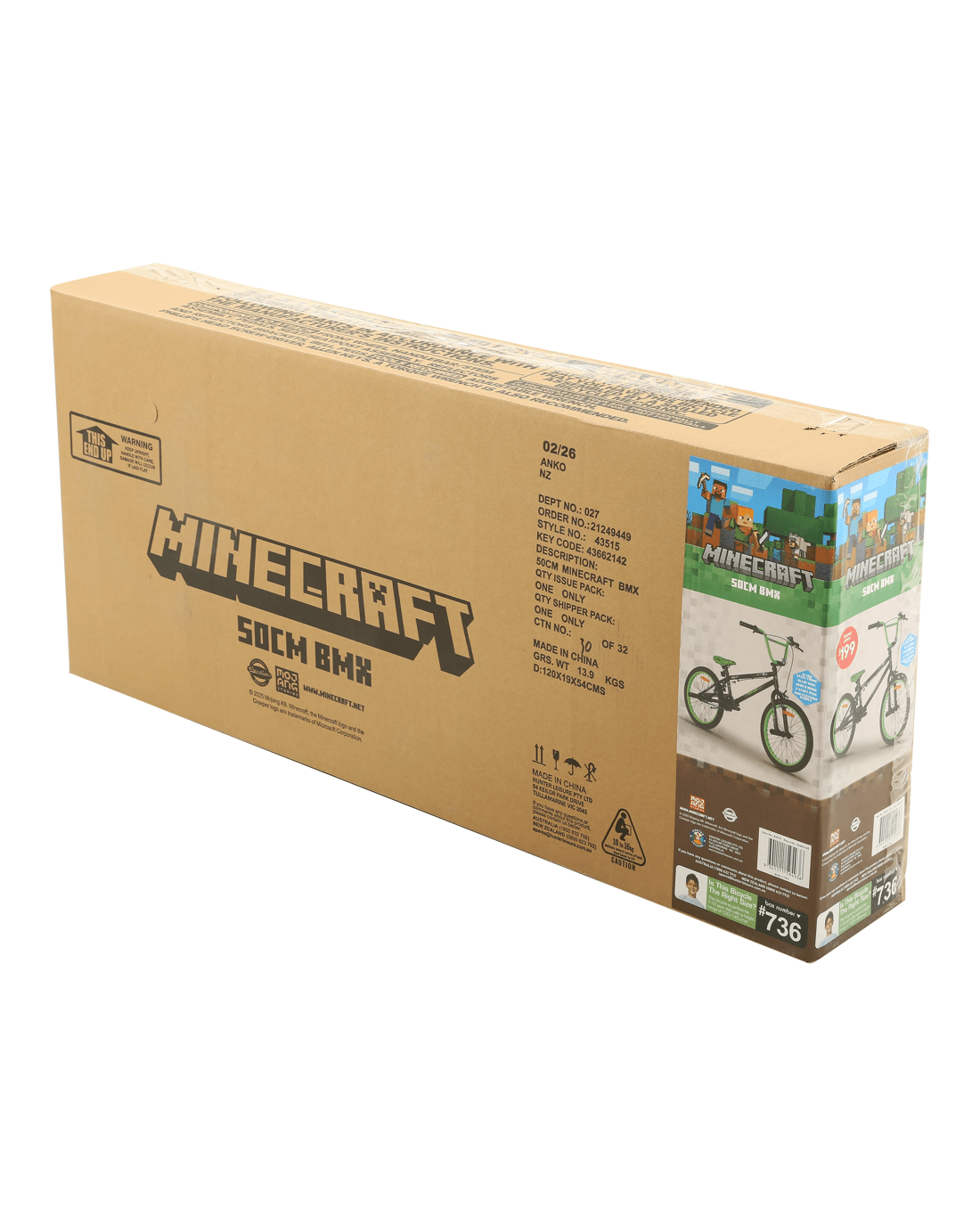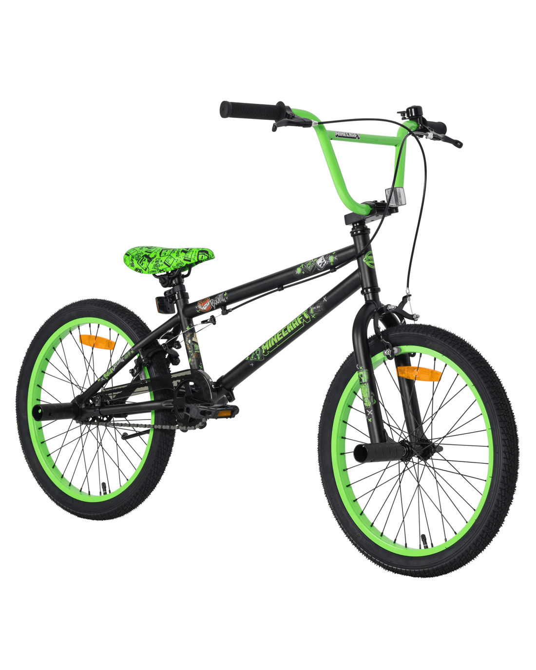 Take on the streets in true block-style with the Minecraft 50cm BMX! Built with a strong hi-ten steel frame and lightweight alloy rims, this bike is made for confident cruising and everyday riding. The rear U-brake provides dependable stopping power, while BMX platform pedals and stunt pegs add extra fun and versatility. With its classic Minecraft look and solid build, it's a great choice for riders ready to roll in style.