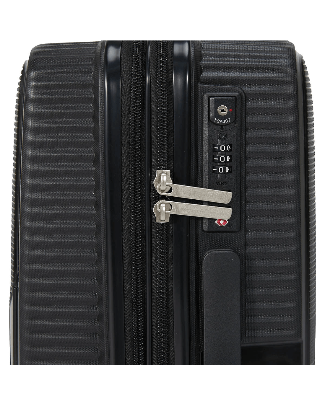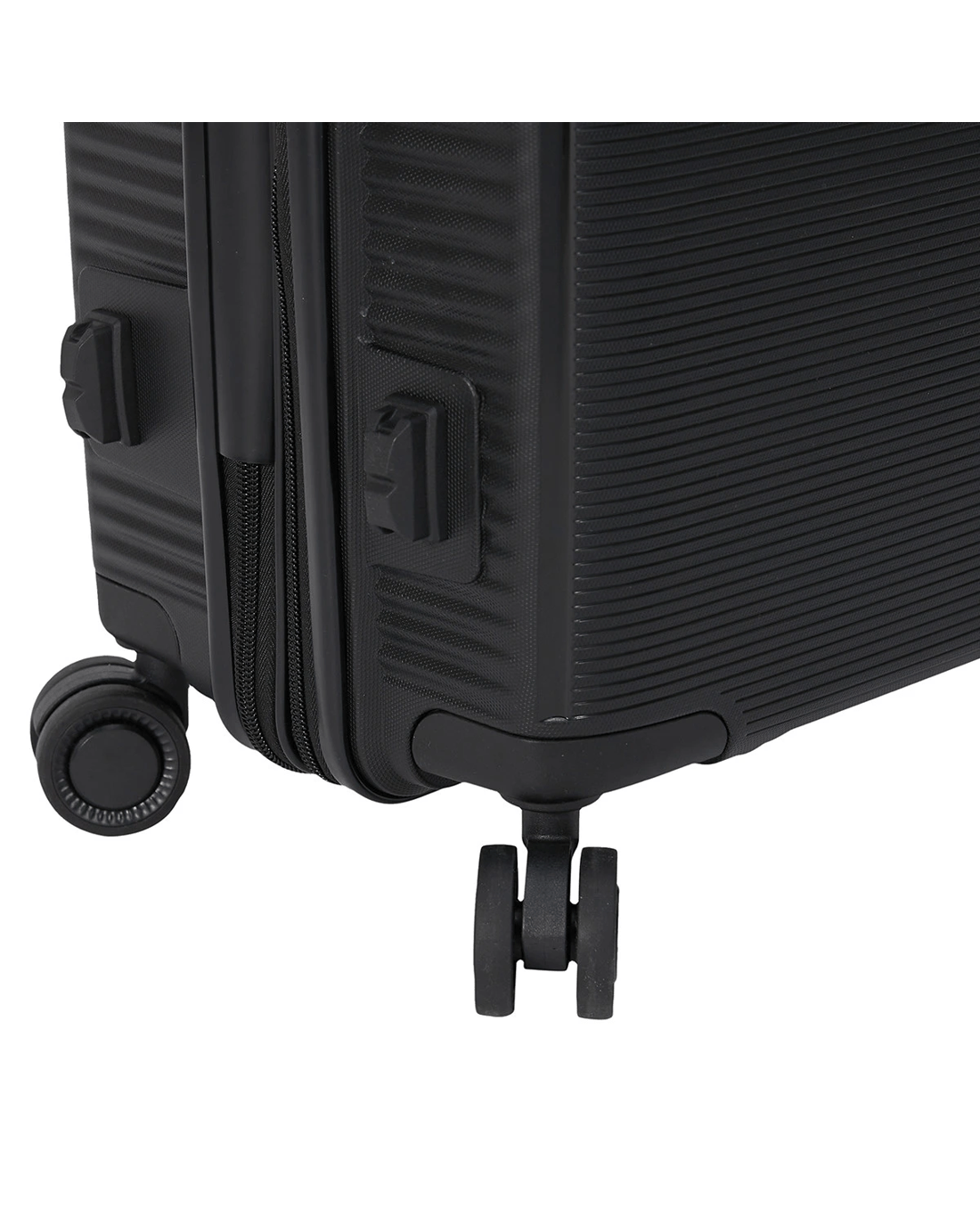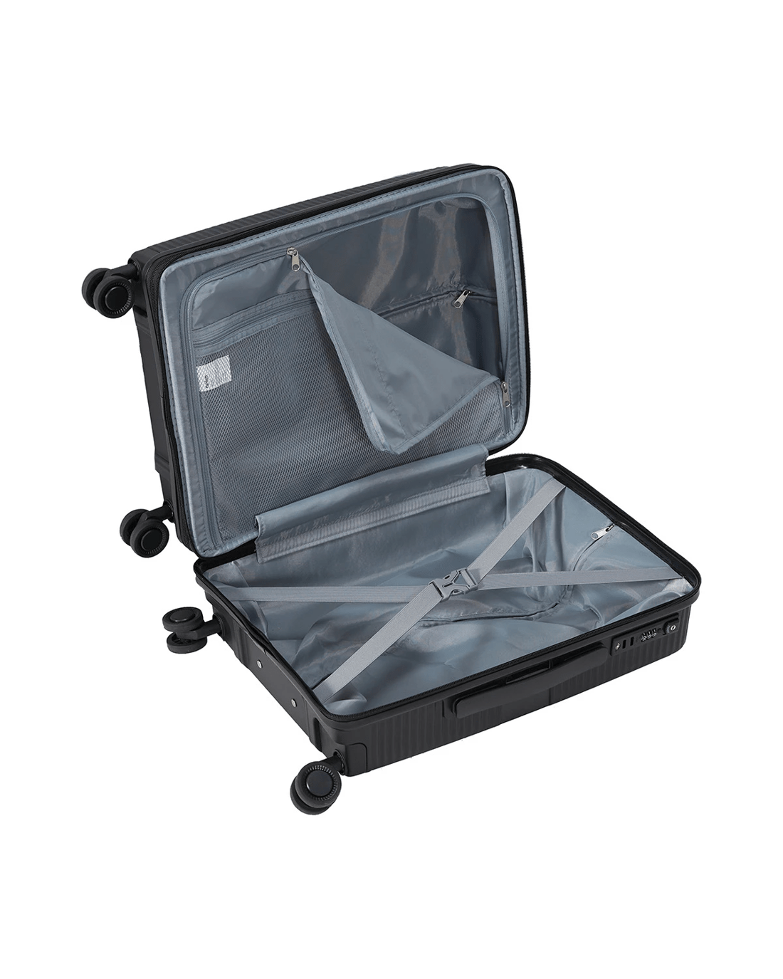 Experience hassle-free travel with this hard upright case that safely conceals travel essentials in the sturdy compartment.