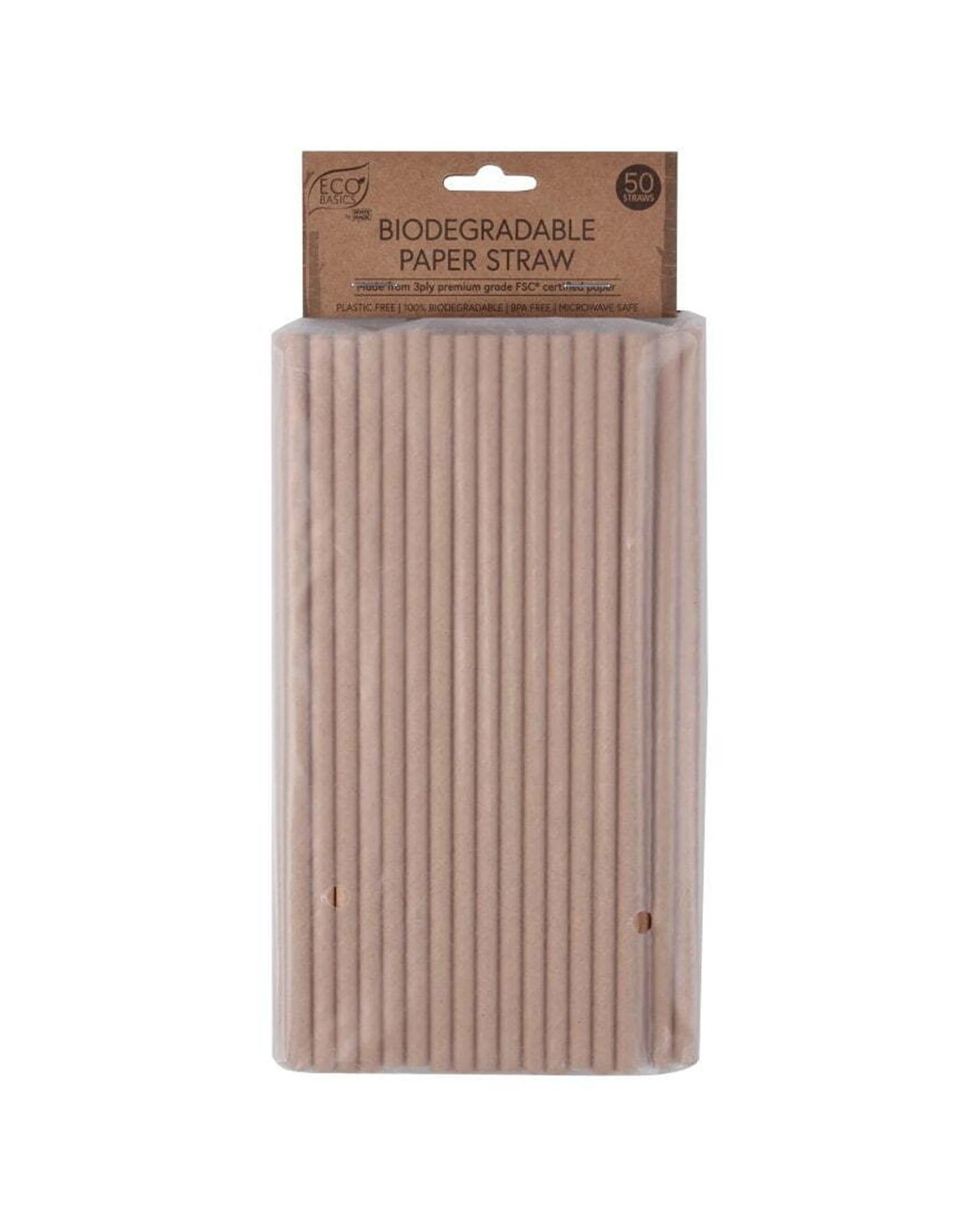 Sold by KG SuperStore50pc Eco Basics 19.5cm Biodegradable Birthday/party 3ply Paper Drinking Straw - Natural
