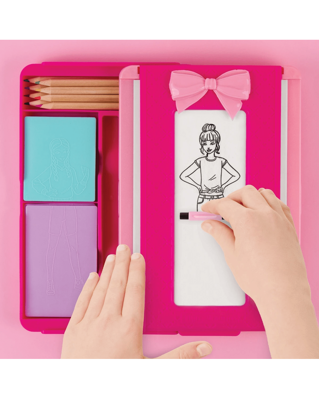 • Includes 1 x fashion design tablet with storage tray, 15 x double-sided design plates, 20 x drawing sheets, 2 x sticker sheets, 1 x portfolio, 8 x coloured pencils, 2 rubbing crayons, 1 x crayon holder and 1 x instruction sheet