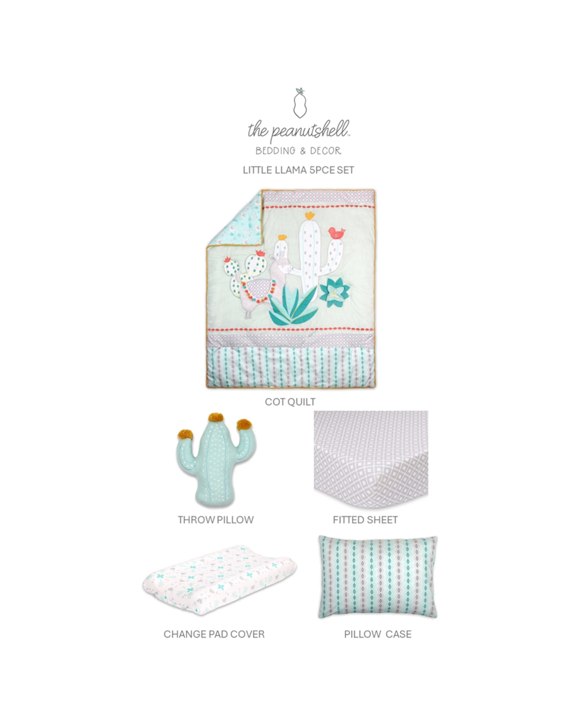 5pc The Peanutshell Little Llama Cotton Cot Bedding Sheet Set - Multi