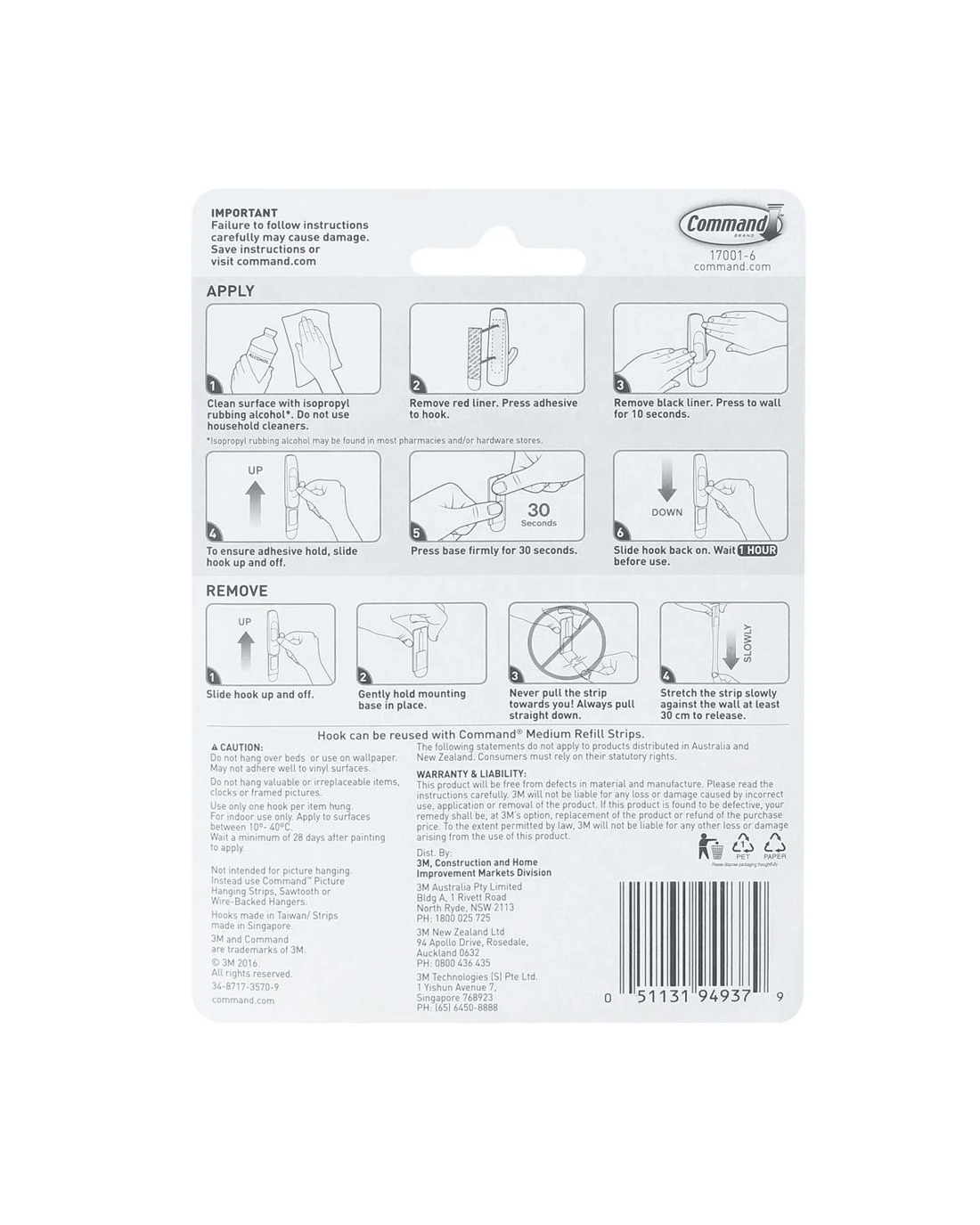 - Remove red liner. Press adhesive to hook.