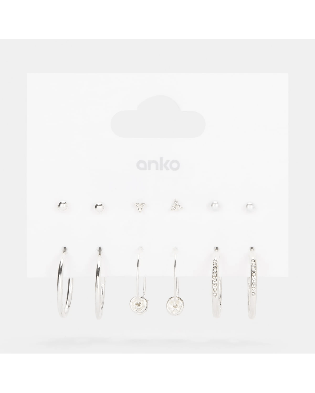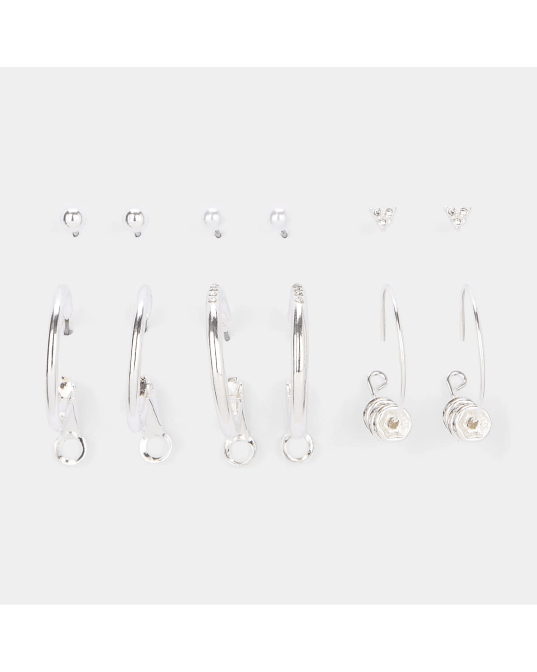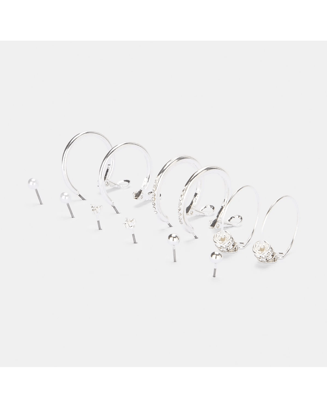 6 Pack Fine Rhondal Earrings - Silver Tone