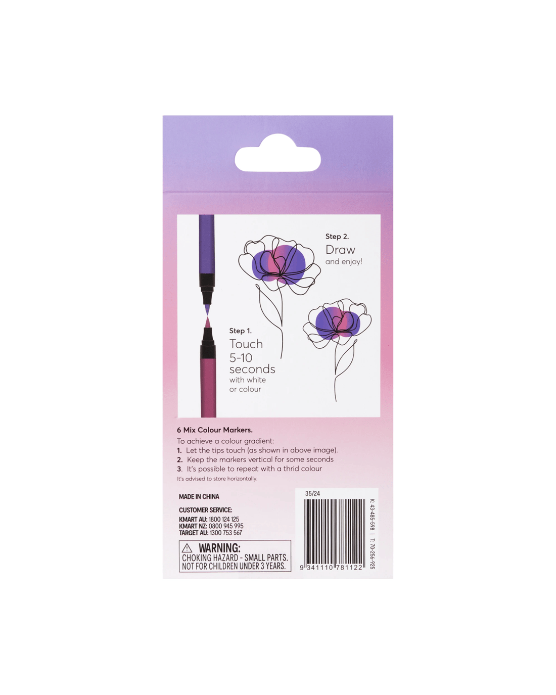 Sold by Kmart6 Pack Mix Colour Markers - Lilac
