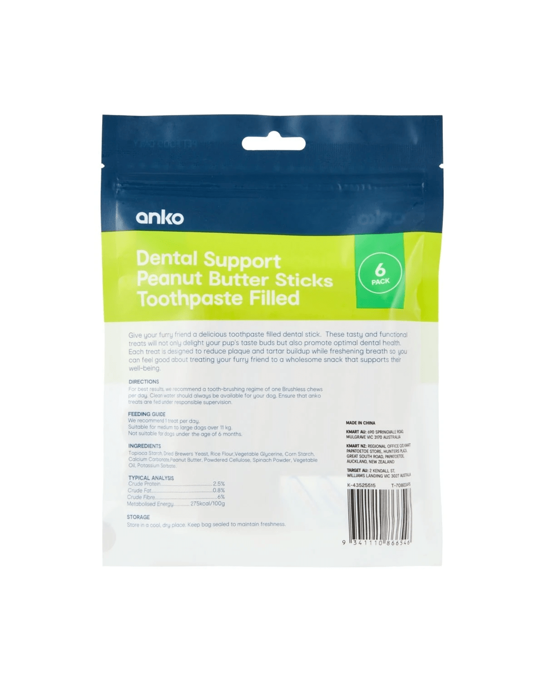 Sold by Kmart6 Pack Pet Treat Toothpaste Dental Sticks Peanut Butter