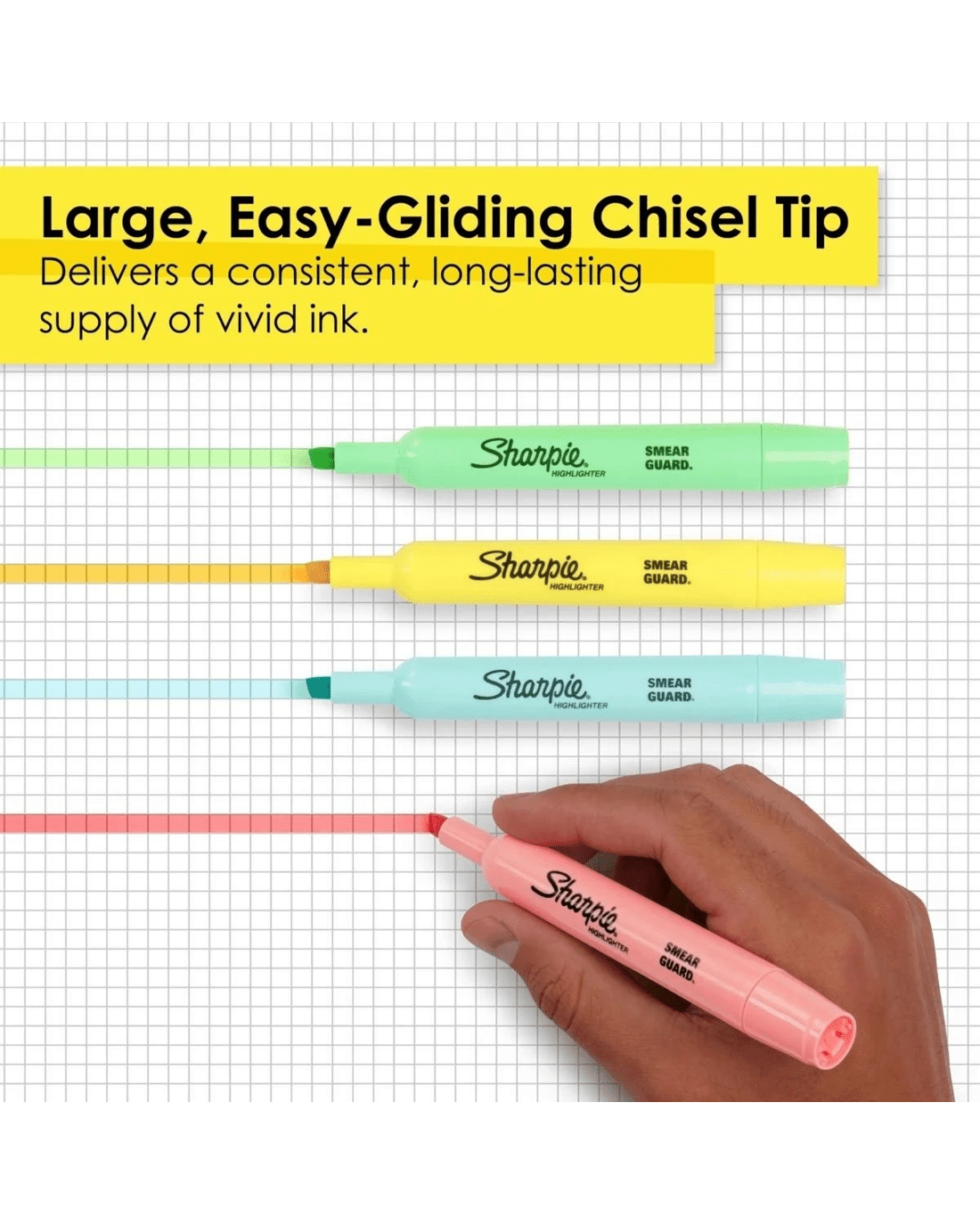 - Large, easy gliding chisel tip delivers a smooth highlighting experience