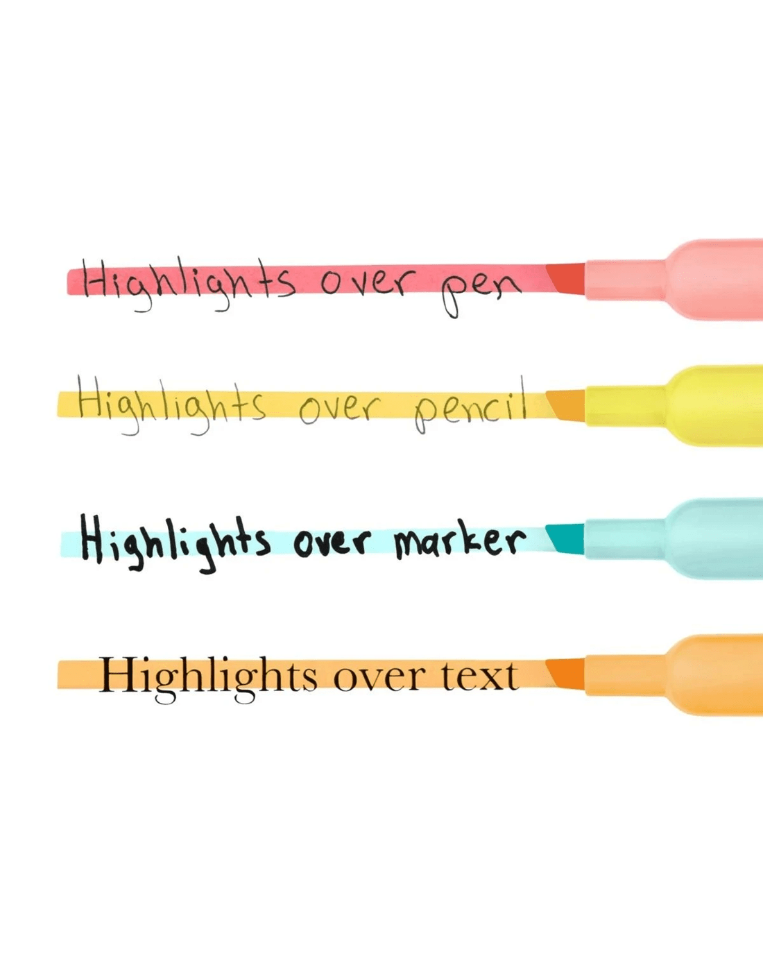 - Soft pastel colours for softer highlighting that stands out