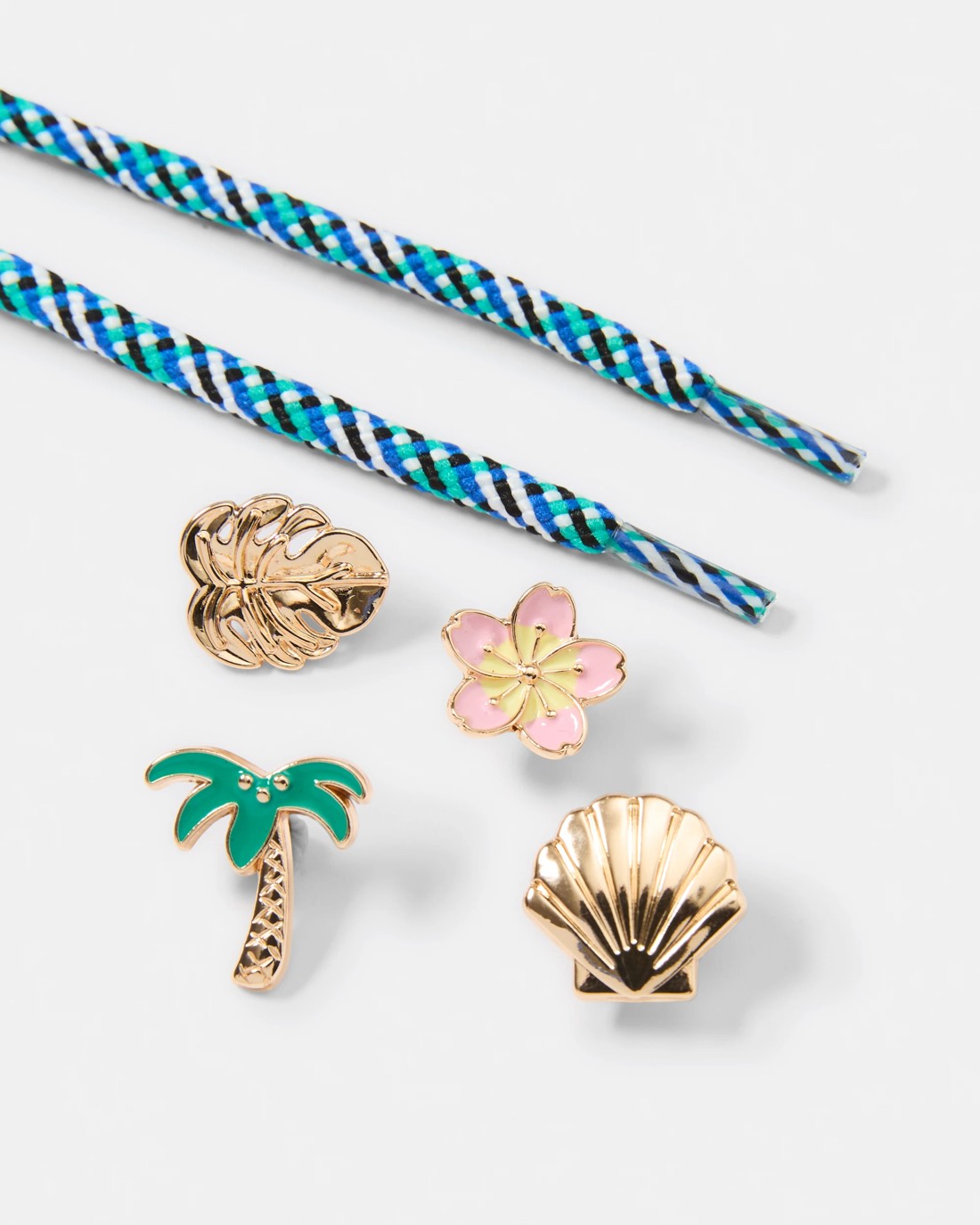Add a little sparkle to every step with the 6 Pack Lace And Charm Pack. Perfect for brightening up sneakers or holiday shoes, this fun set lets you personalise your footwear with a dash of charm.