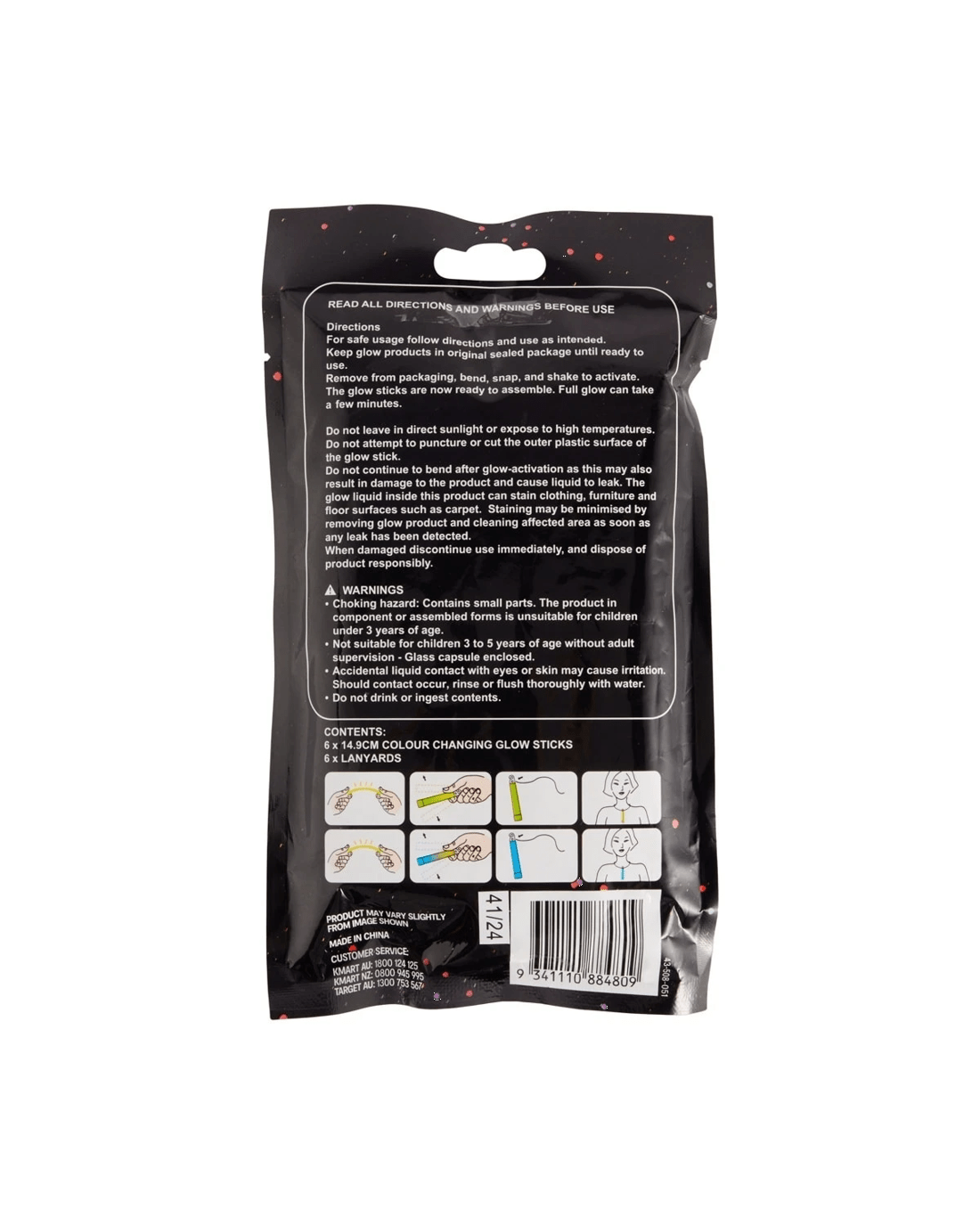 Sold by Kmart6 Piece Colour Changing Glow Sticks