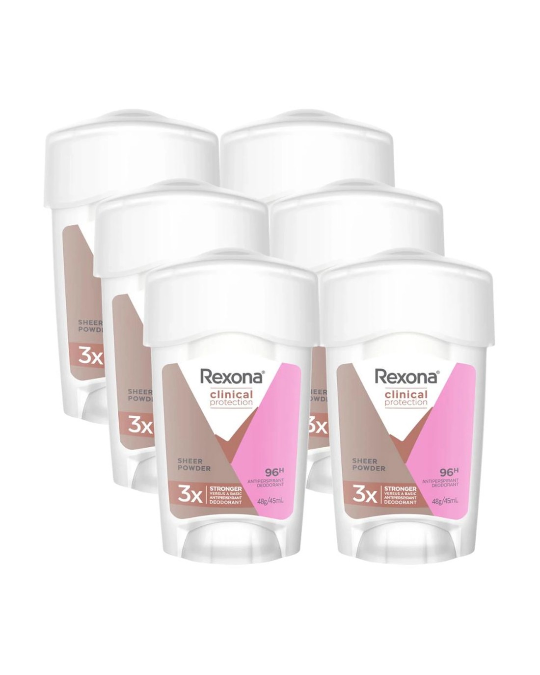 6 x Rexona Clinical Protection 96H Sheer Powder Antiperspirant Cream Deodorant 45mL