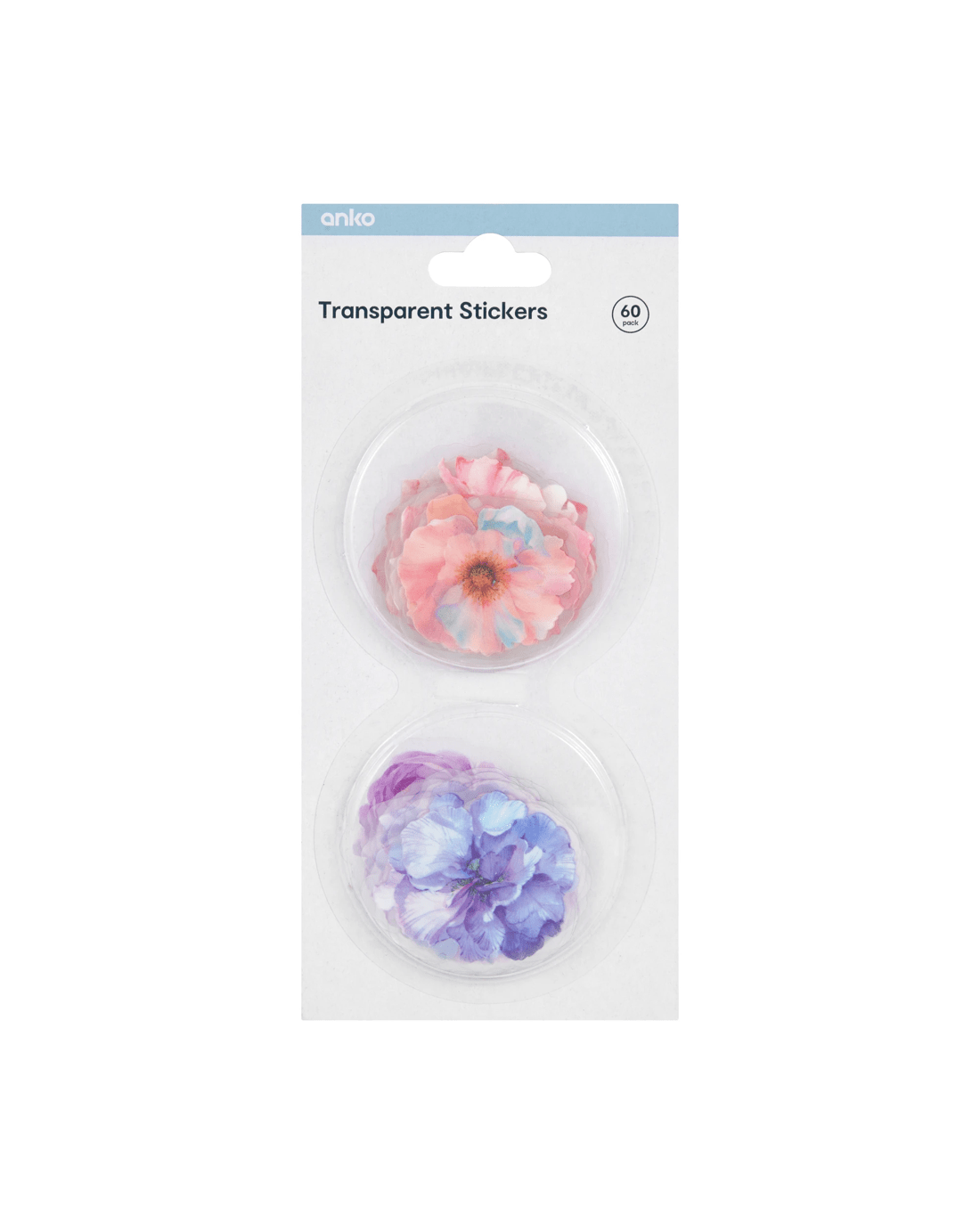 60 Pack Transparent Stickers - Flowers