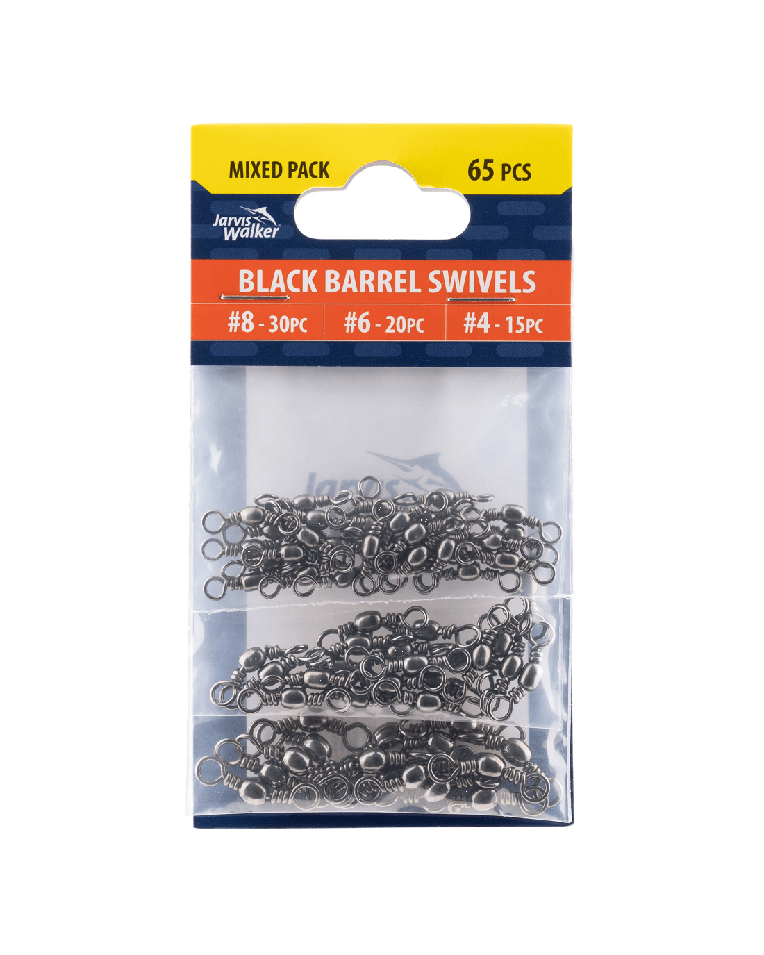 Jarvis Walker Black Barrel Swivels are designed to help reduce line twist for smoother performance. This mixed pack includes sizes #8, #6 and #4 to suit a range of fishing setups, and comes in resealable bags for convenient storage and organisation.