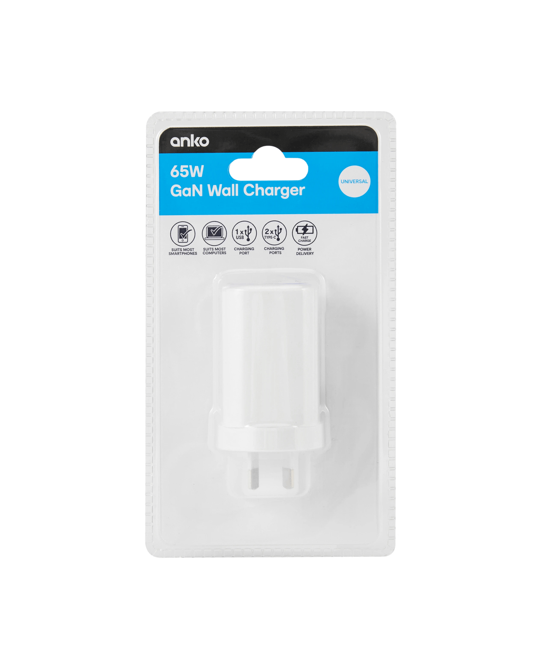Charge your laptop and other devices with ease using this fast-charging 65W Wall Charger.