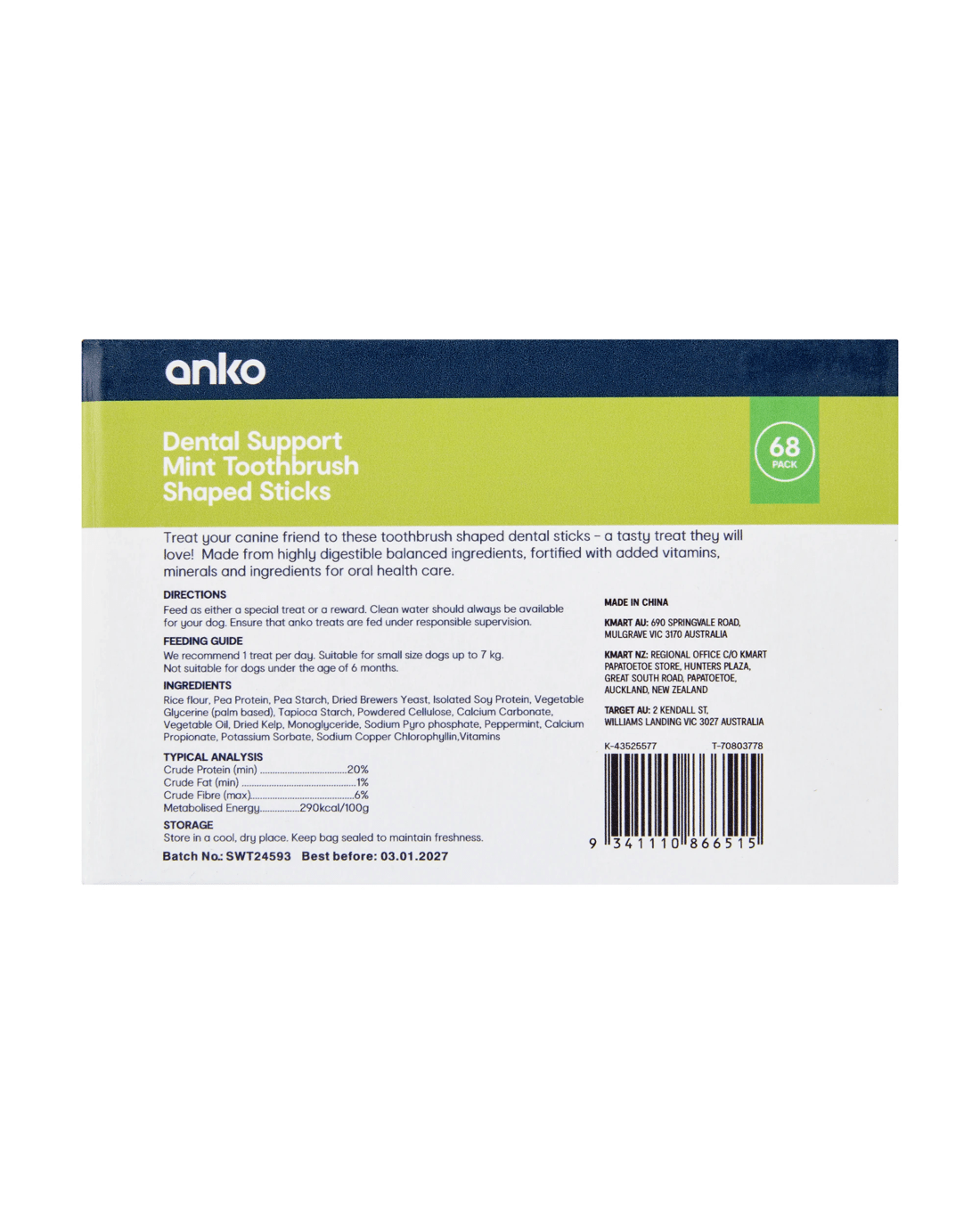 Sold by Kmart68 Pack Pet Treat Dental Toothbrush Bulk - Small