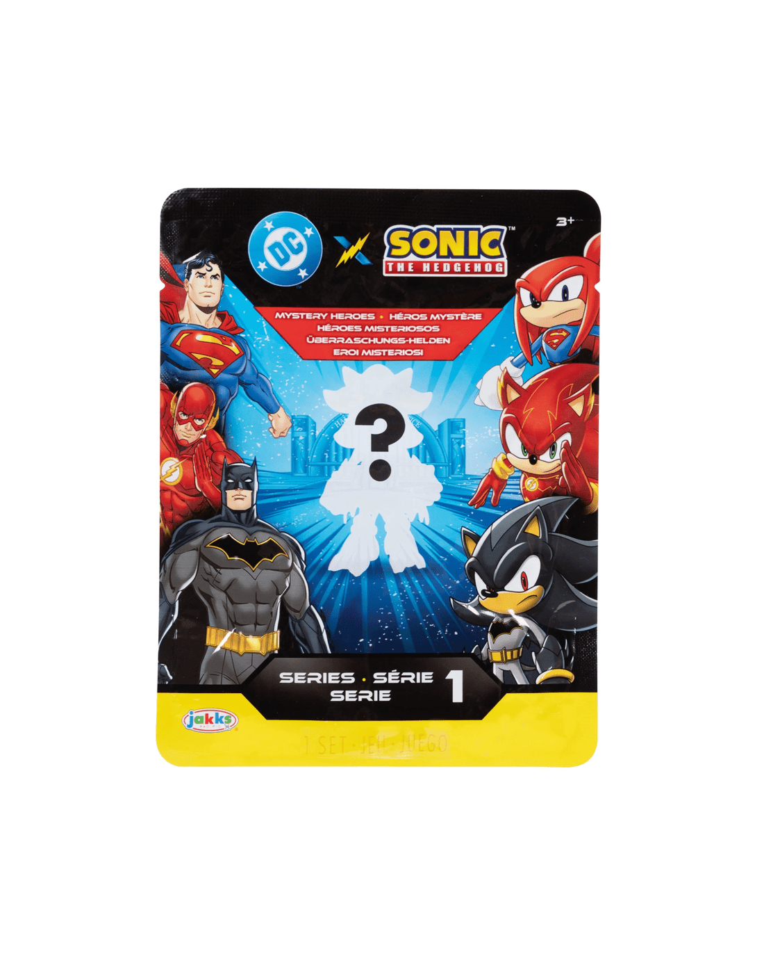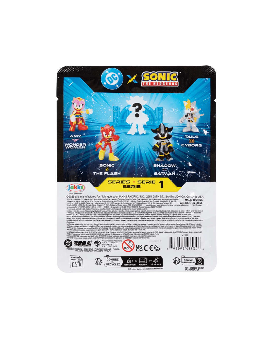 Collect all of your favourite characters - Sonic as The Flash, Amy as Wonder Woman, Shadow as Batman, Tails as Cyborg…and a special mystery chase figure!