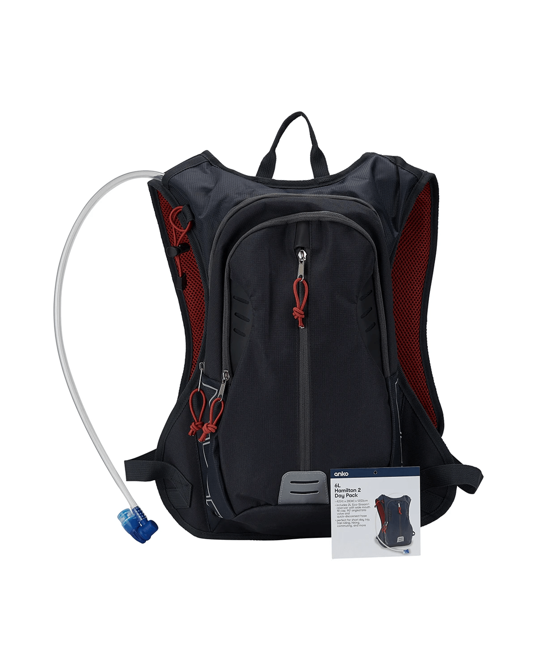 - Large main compartment with reservoir sleeve and hose port
