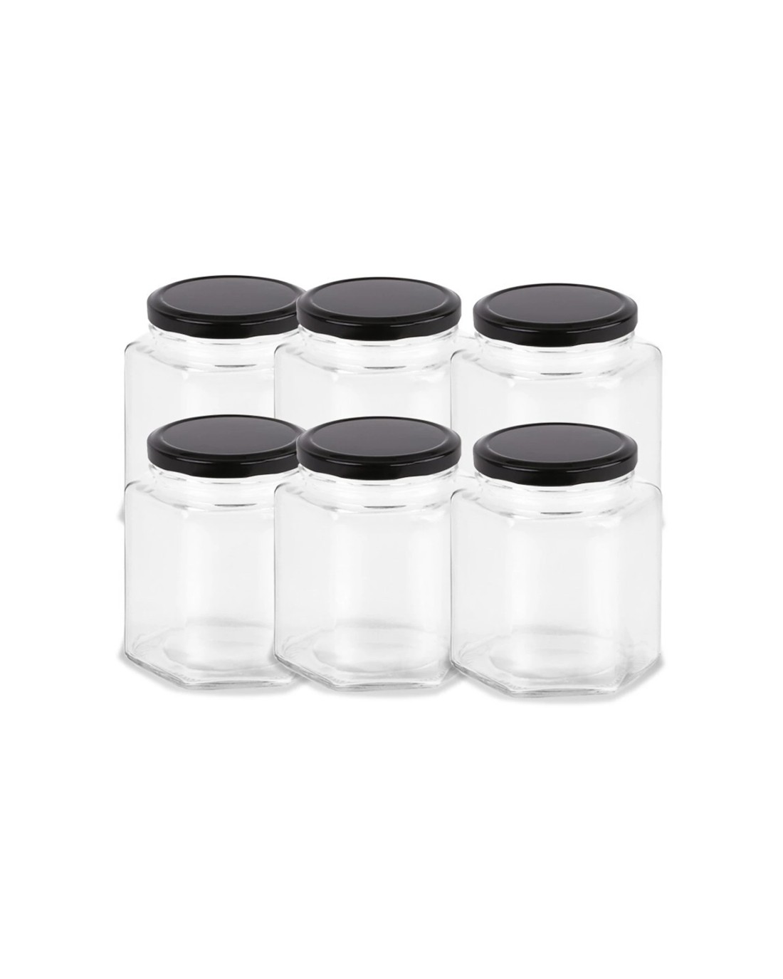 Sold by KG SuperStore6pk Lemon & Lime Glass Hexagonal Jar 95ml Black Lid Kitchen Storage Container - Black