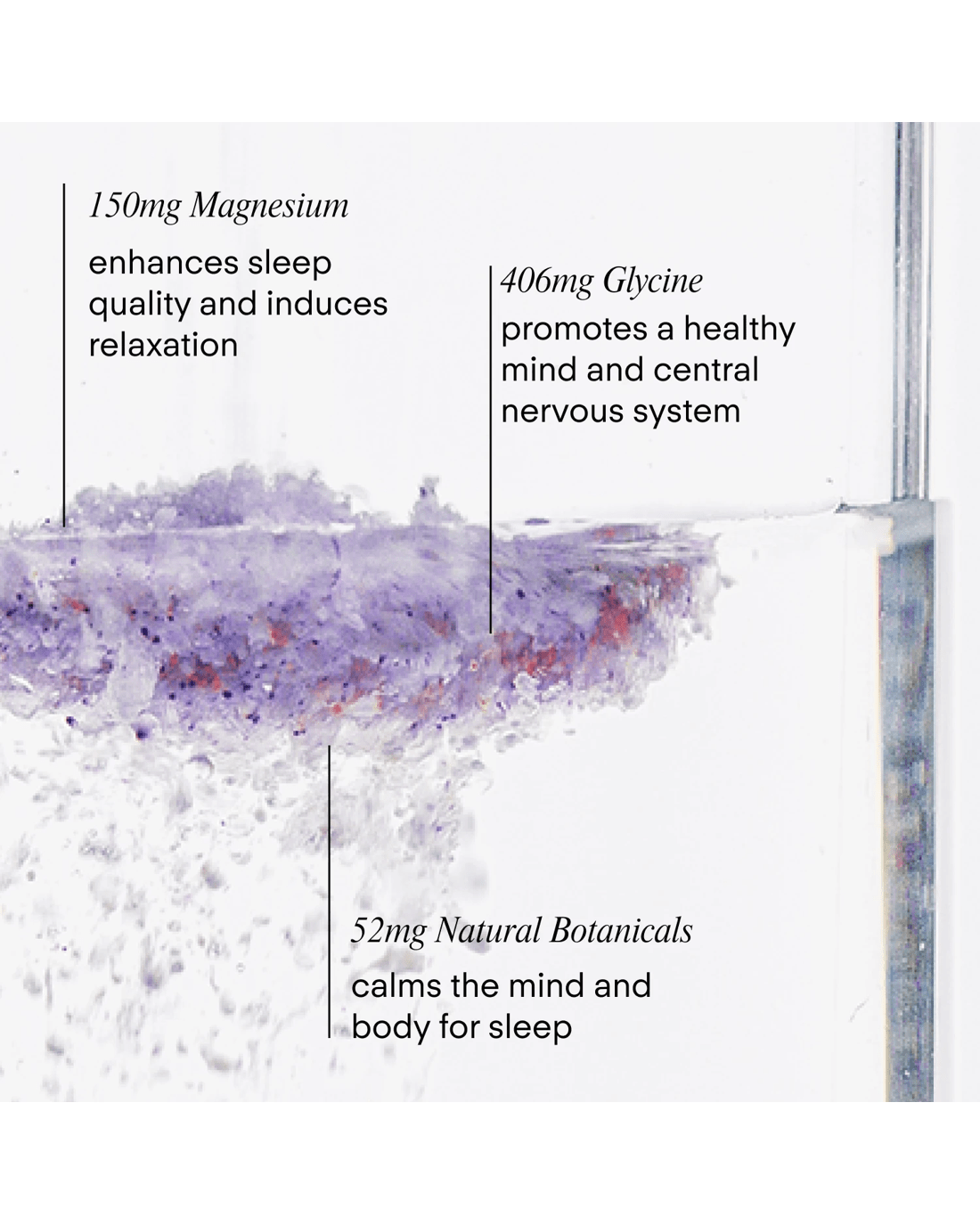 Our unique blend of Magnesium Glycinate, Glycine and natural botanicals supports restful sleep. No fillers, just science—simply mix one glass before bed to wake up feeling refreshed.