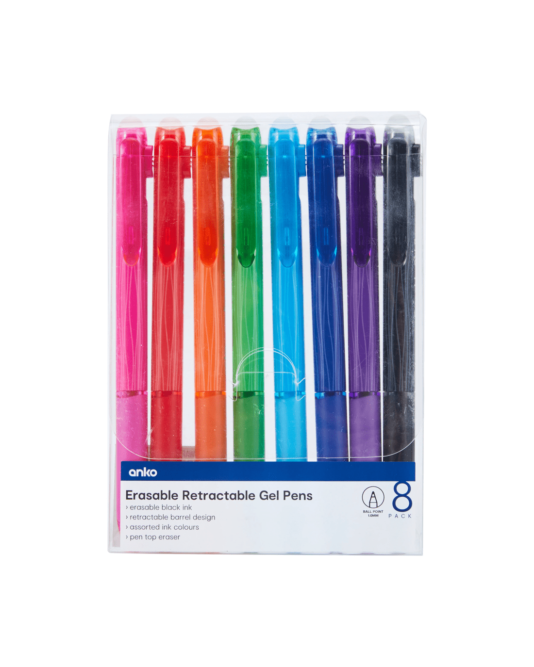 Sold by Kmart8 Pack Erasable Retractable Gel Pens