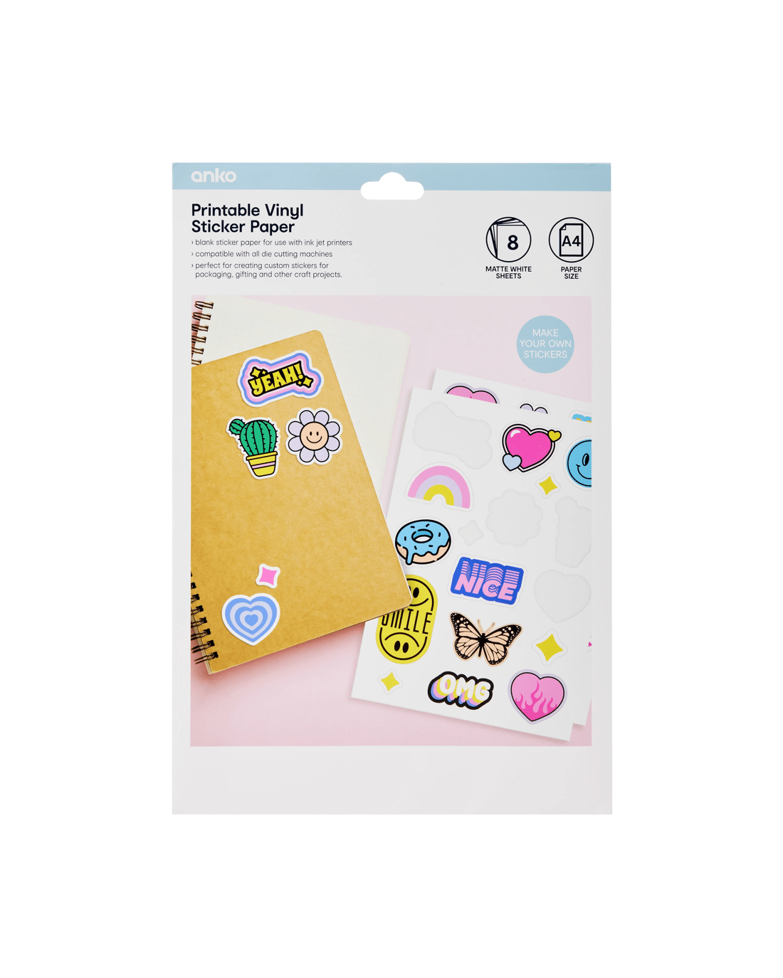 8 Pack Printable Vinyl Sticker Paper