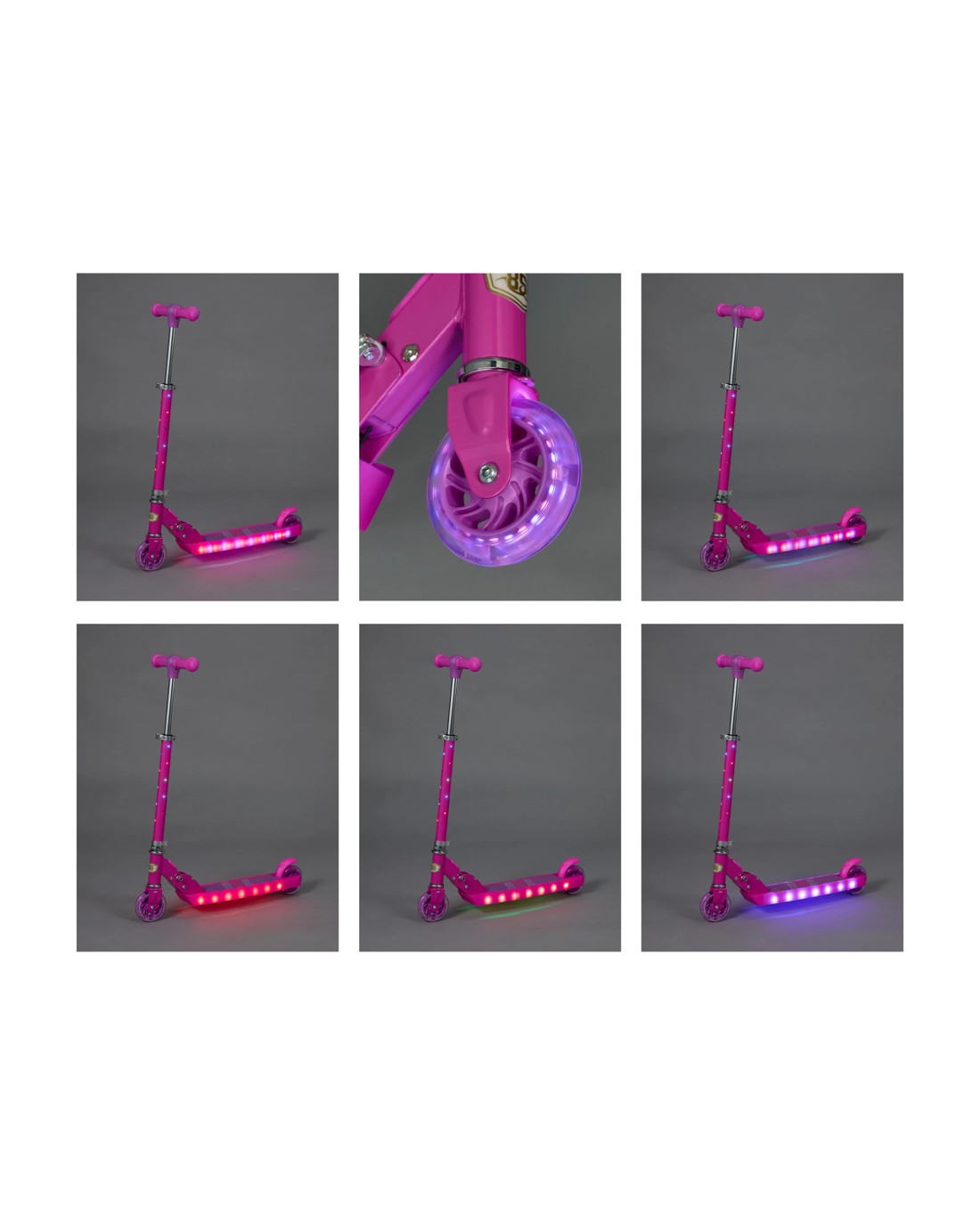 Scoot in style on the 858 light up folding scooter. This colourful scooter features multi LED light designs and light up wheels that kids will love.