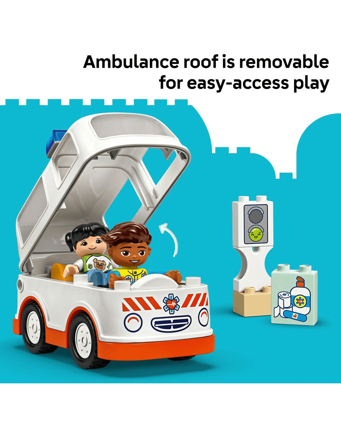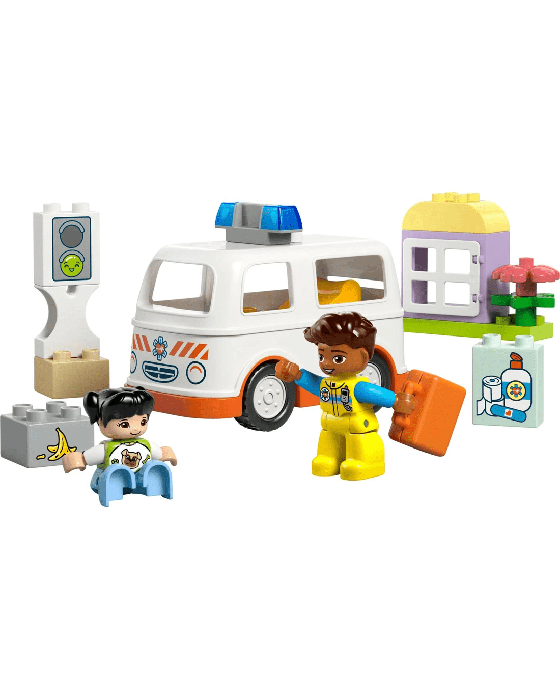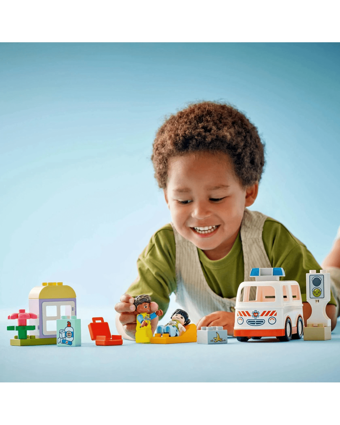 - Pretend play ambulance toy – Preschoolers role-play exciting real-life rescue scenarios with the Ambulance & Driver toddler toy, which comes with an ambulance and a small house build