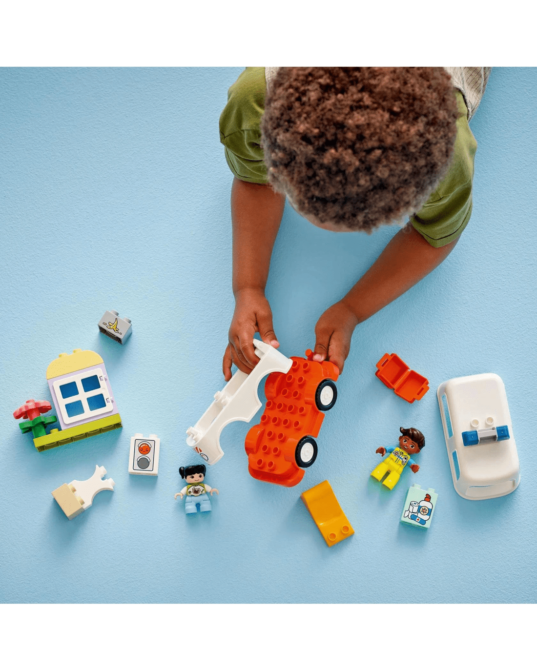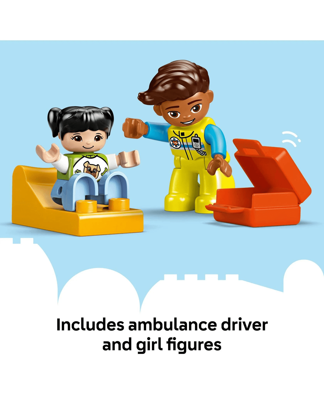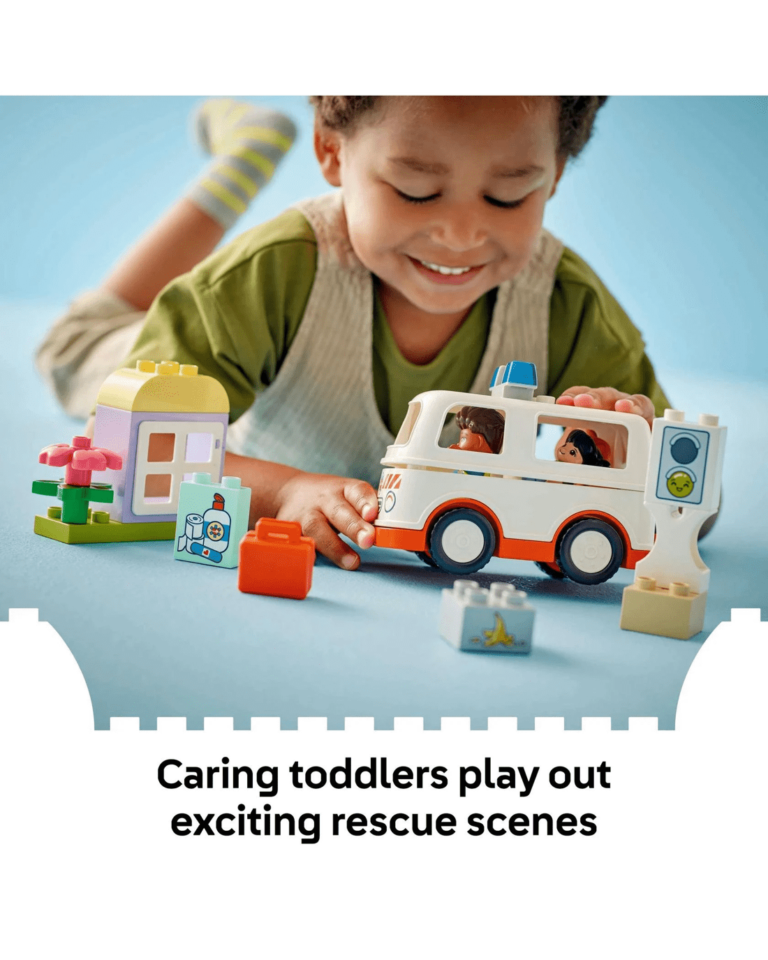 - Pretend play ambulance toy – Preschoolers role-play exciting real-life rescue scenarios with the Ambulance & Driver toddler toy, which comes with an ambulance and a small house build