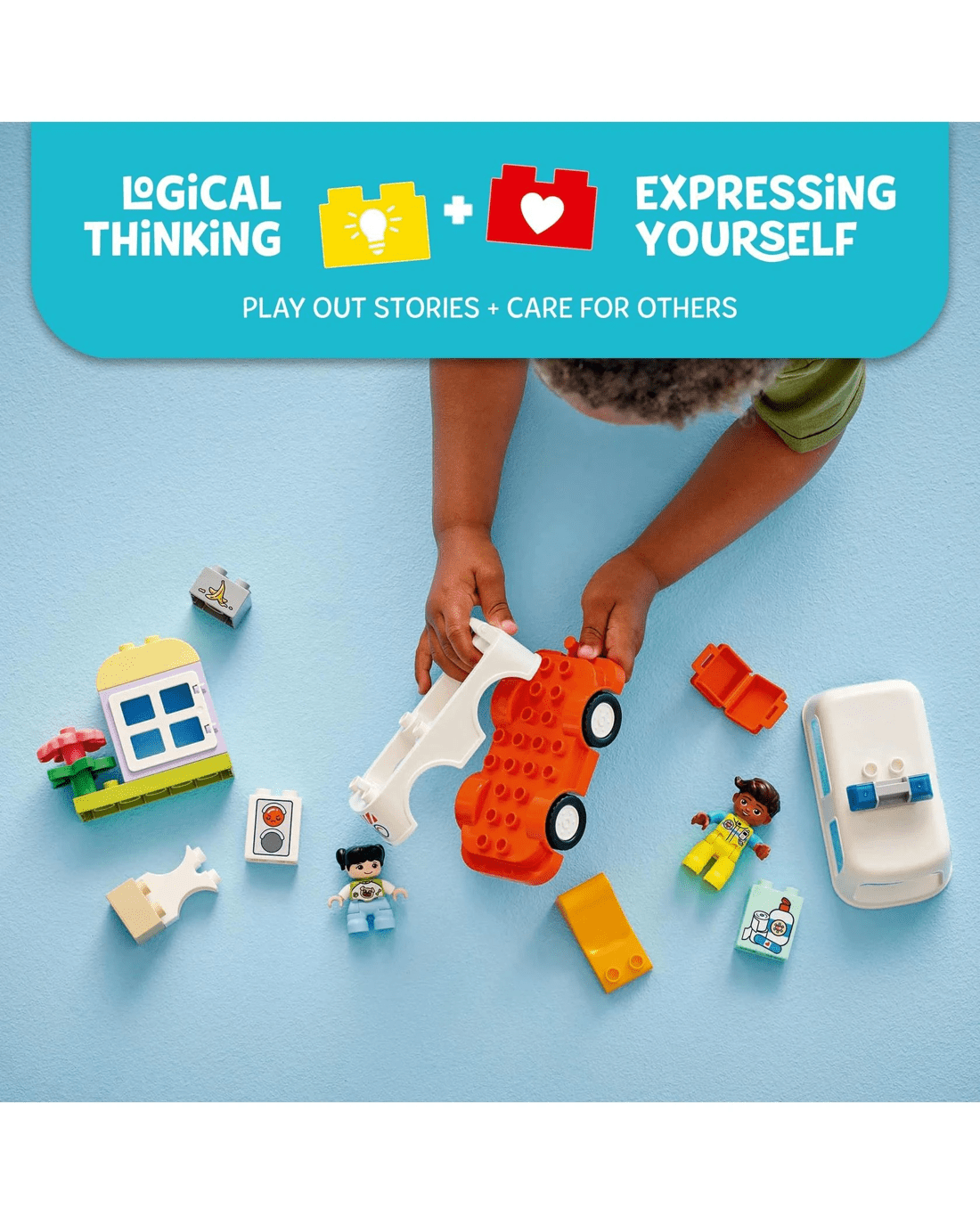 - Social-emotional learning activities – Includes ambulance driver and girl figures, a car, toy bag and first aid kit so toddlers can explore social skills as they learn how paramedics care for patients