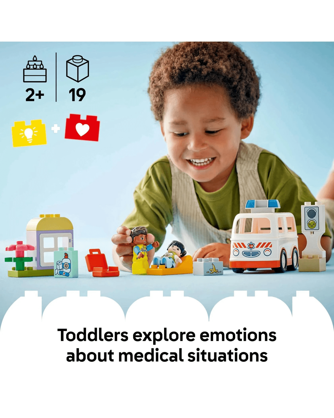 - Creative role-play toy for toddlers – Preschoolers learn empathy as they imagine how the patient is feeling using the digital play wheel included in the building instructions on the LEGO® Builder app