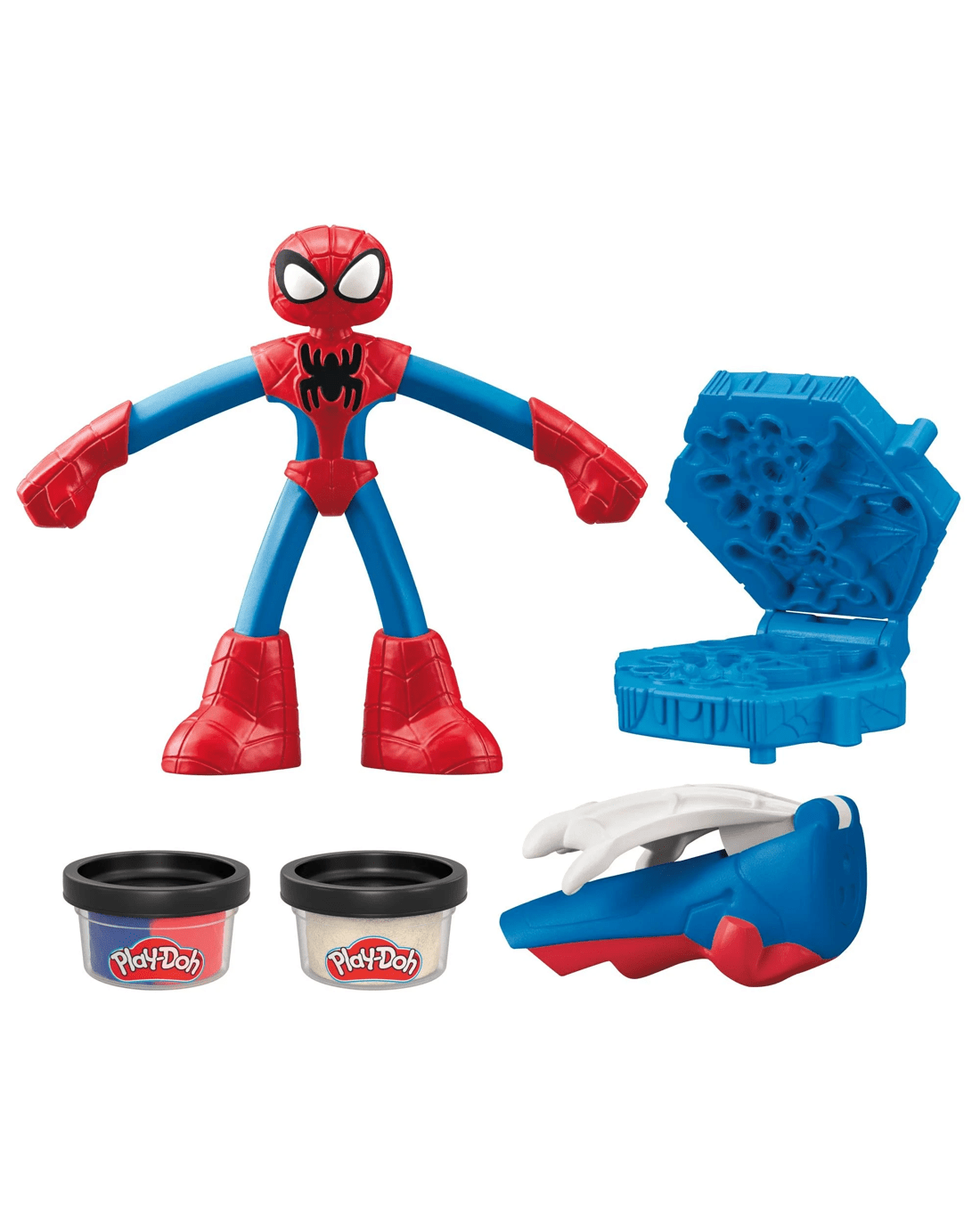- CREATE PLAY-DOH POWERUPS: Use the book-mold and 2 Play-Doh cans to create attachable web wings for the Spider-Man figure, web splat accessories, and spider drones