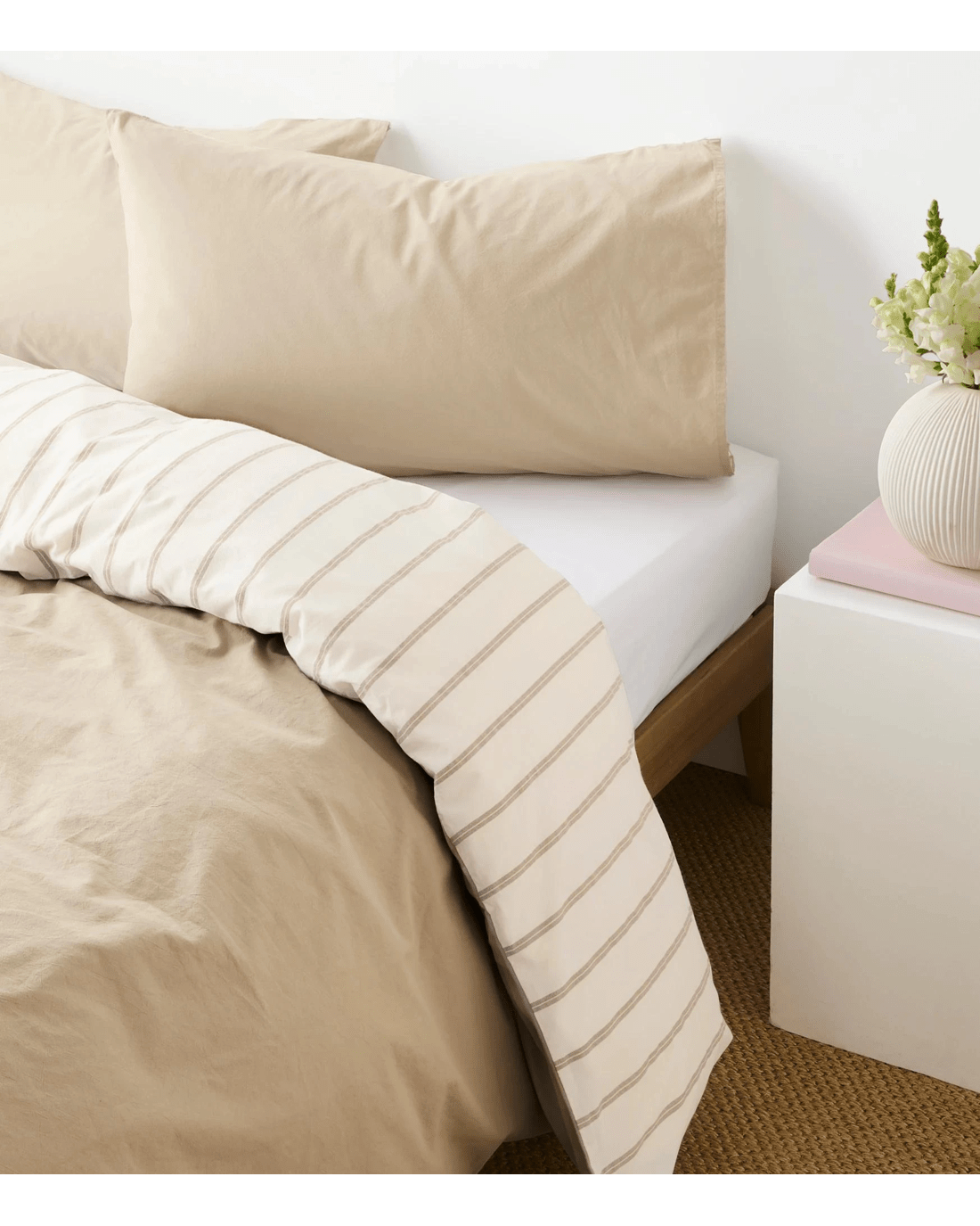Transform your bedroom into a cosy haven with the Arlo Stonewash Stripe Quilt Cover Set. Made from soft cotton that just gets gentler with every wash, this set welcomes you to curl up and unwind after a long day. Its contemporary stripe design on the reverse balances perfectly with the simple, solid front, making it a wonderful match for any décor style. Whether it's the warmth you crave in winter or a light layer during summer, this quilt cover set offers year-round comfort. Enjoy fuss-free care as it's easy to pop in the washing machine. Treat yourself to restful nights and refresh your space today with Arlo’s inviting charm.