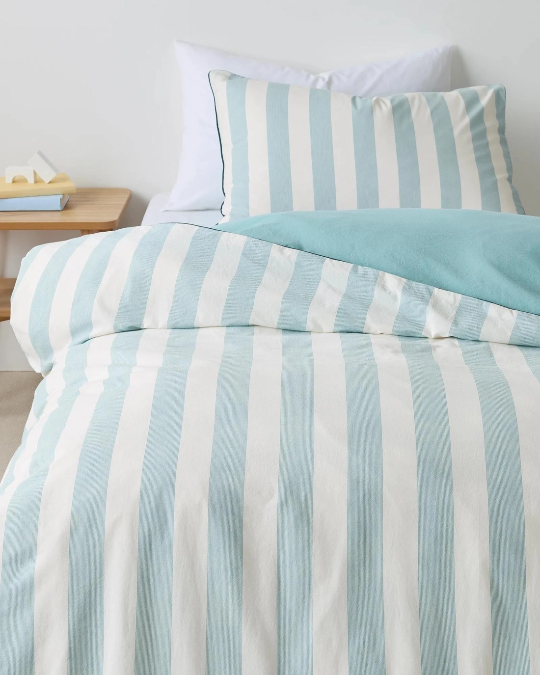 Make bedtime a joyful experience with the Arlo Stonewash Stripe Kids Quilt Cover Set. Designed from soft, pre-washed cotton, this cover grows gentler with every wash, ensuring your child always feels comfy and cared for. Bright marine blue stripes give any room a cheerful and playful look, while the solid marine blue reverse side is perfect for a restful night's sleep. The addition of cord piping offers a neat, stylish touch, making it a charming centrepiece for your little one’s space. Simple to look after and ideal for all seasons, it’s an easy way to refresh and personalise your child’s bedroom. Treat your youngster to comfort and style—bring home the Arlo set today!