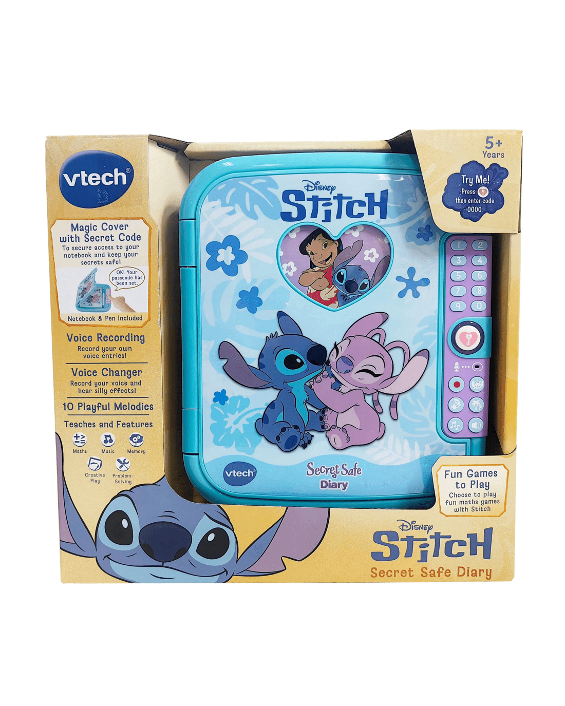 Step into a world of privacy and fun with the Vtech Stitch Secret Safe Diary. Designed for young fans of Stitch, this clever diary lets your child create their own four-digit passcode, ensuring their thoughts stay confidential. The included notebook and pen make it easy for imaginations to soar, while the built-in secret compartment offers a special place to tuck away treasures. Interactive features like voice recording, playful melodies, and engaging maths games encourage creativity and learning each day. With delightful tunes to inspire a little hula dancing, your child can enjoy hours of entertainment. Give your little one a safe space for expression and adventure – bring home the Stitch Secret Safe Diary today.Features
