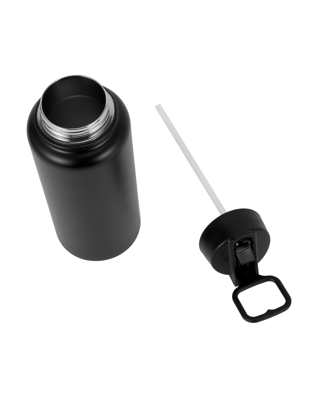 Enjoy your favourite beverage anytime and anywhere with this elegant Black Double Wall Insulated Cylinder Drink Bottle.