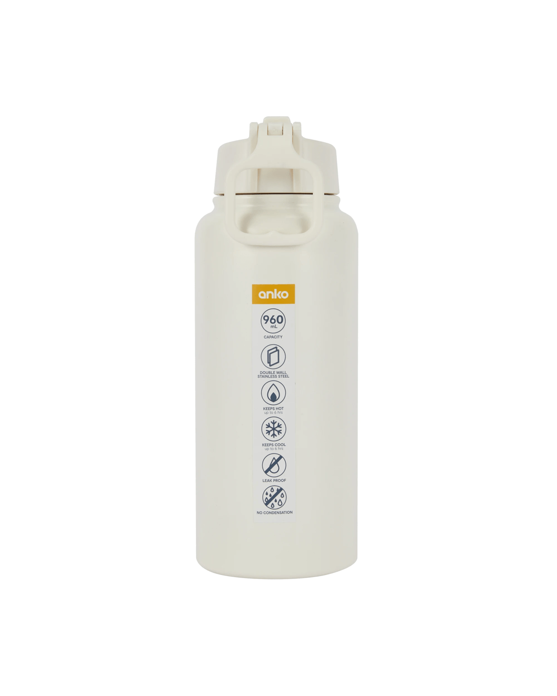 960ml Cream Double Wall Insulated Cylinder Drink Bottle