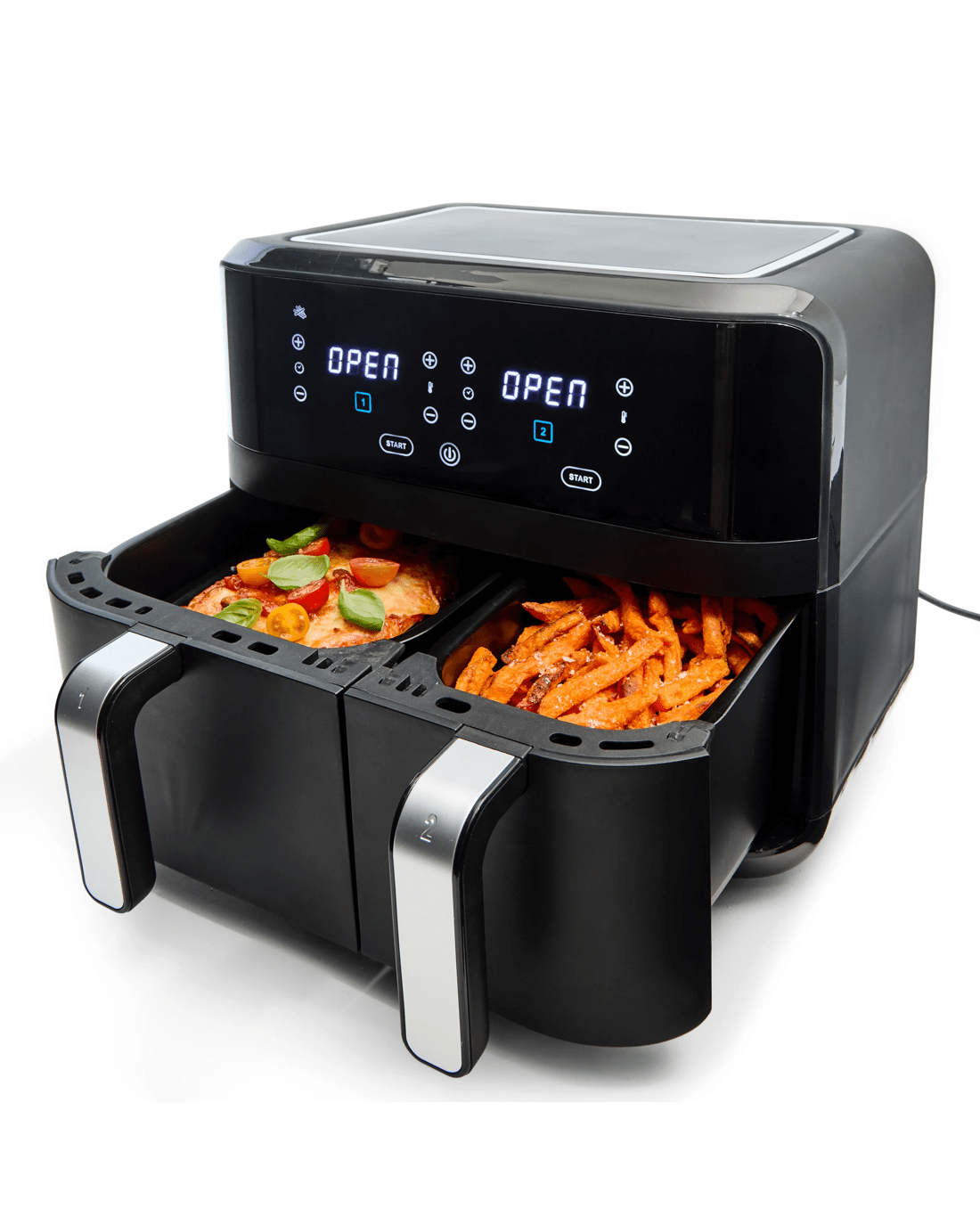 Cook delicious meals with less oil using the 9L Twin Air Fryer, designed for convenient and efficient everyday cooking. Its dual drawer design helps you prepare multiple dishes at once, making it ideal for busy households.
