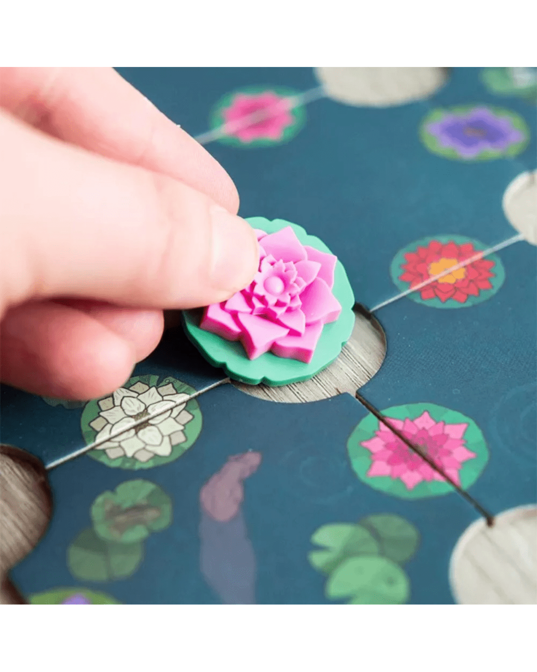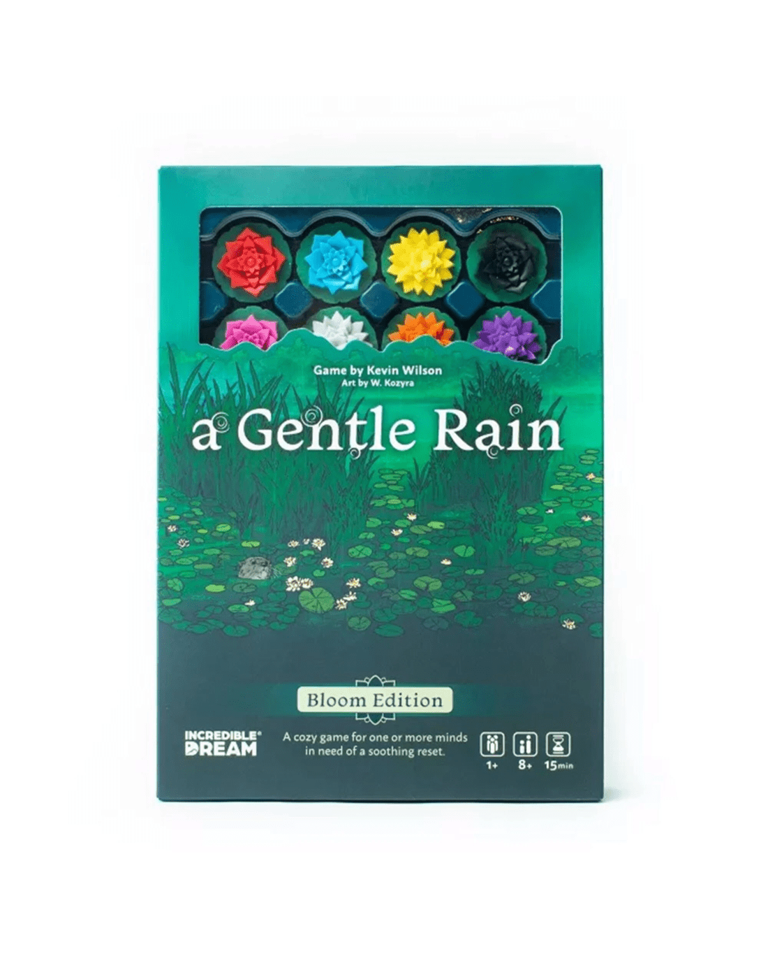 In this Bloom Edition, players will enjoy all the core mechanics of the beloved original, with added floral tile art that enhances its visual charm. Simply draw and place lake tiles to match blossoms and complete flower sets. As the rain falls gently, your pond comes to life, flower by flower. With quick setup and minimal rules, it's a perfect mindful break for gamers of all levels.