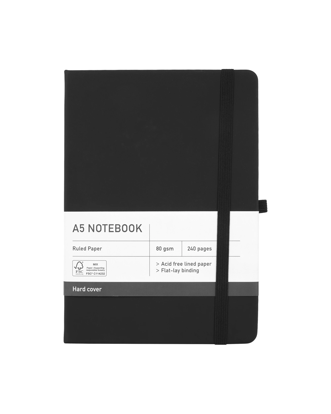 A5 Journal Black Hard Cover 80gsm 240 Pages
